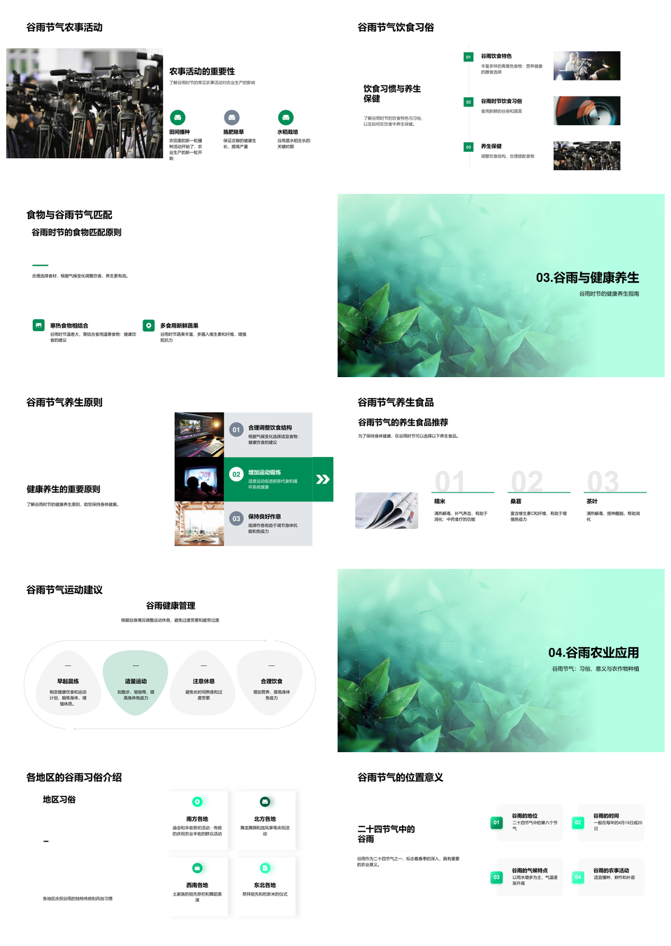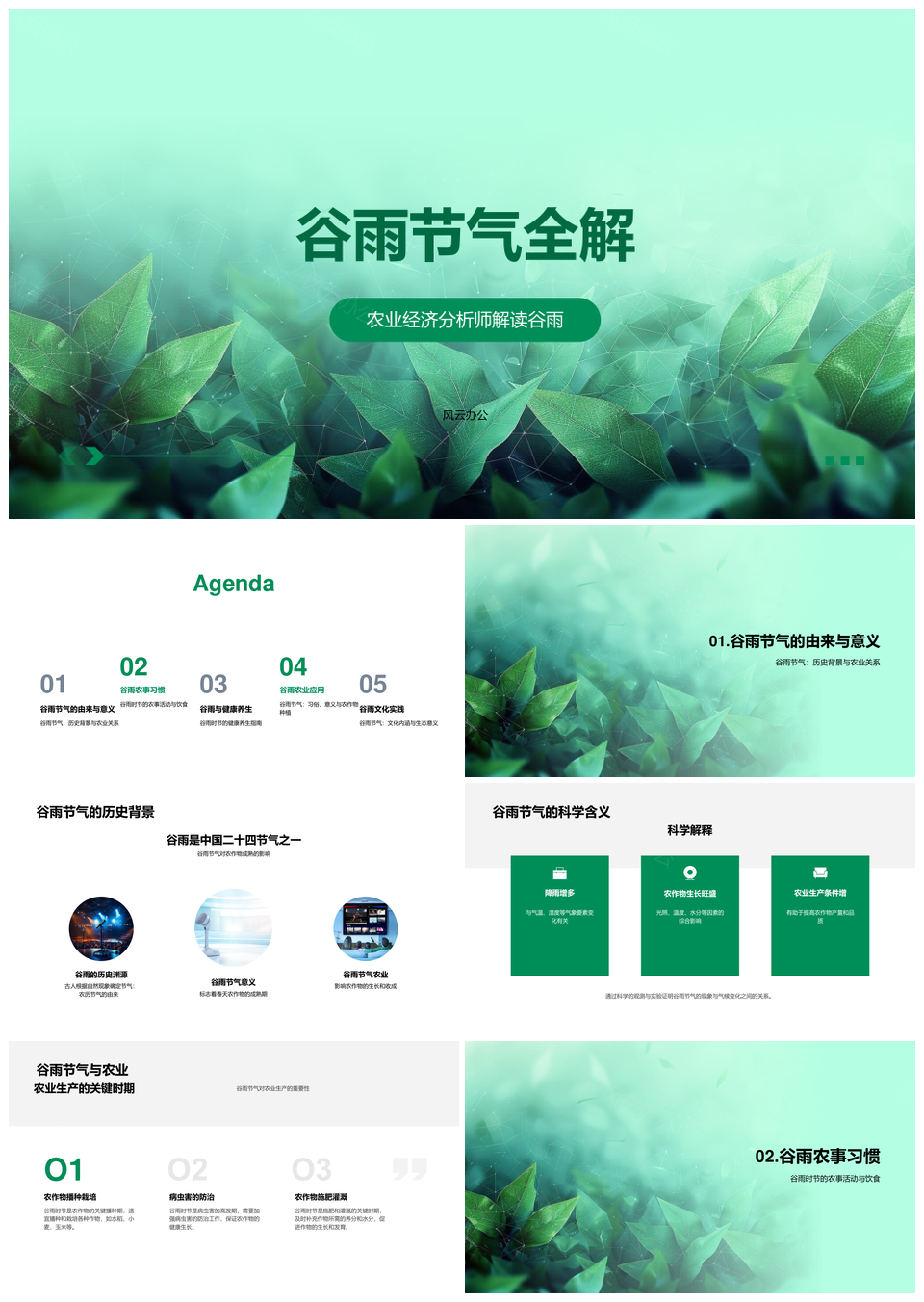 谷雨节气农业经济历史科学农事饮食养生解析PPT模板推荐