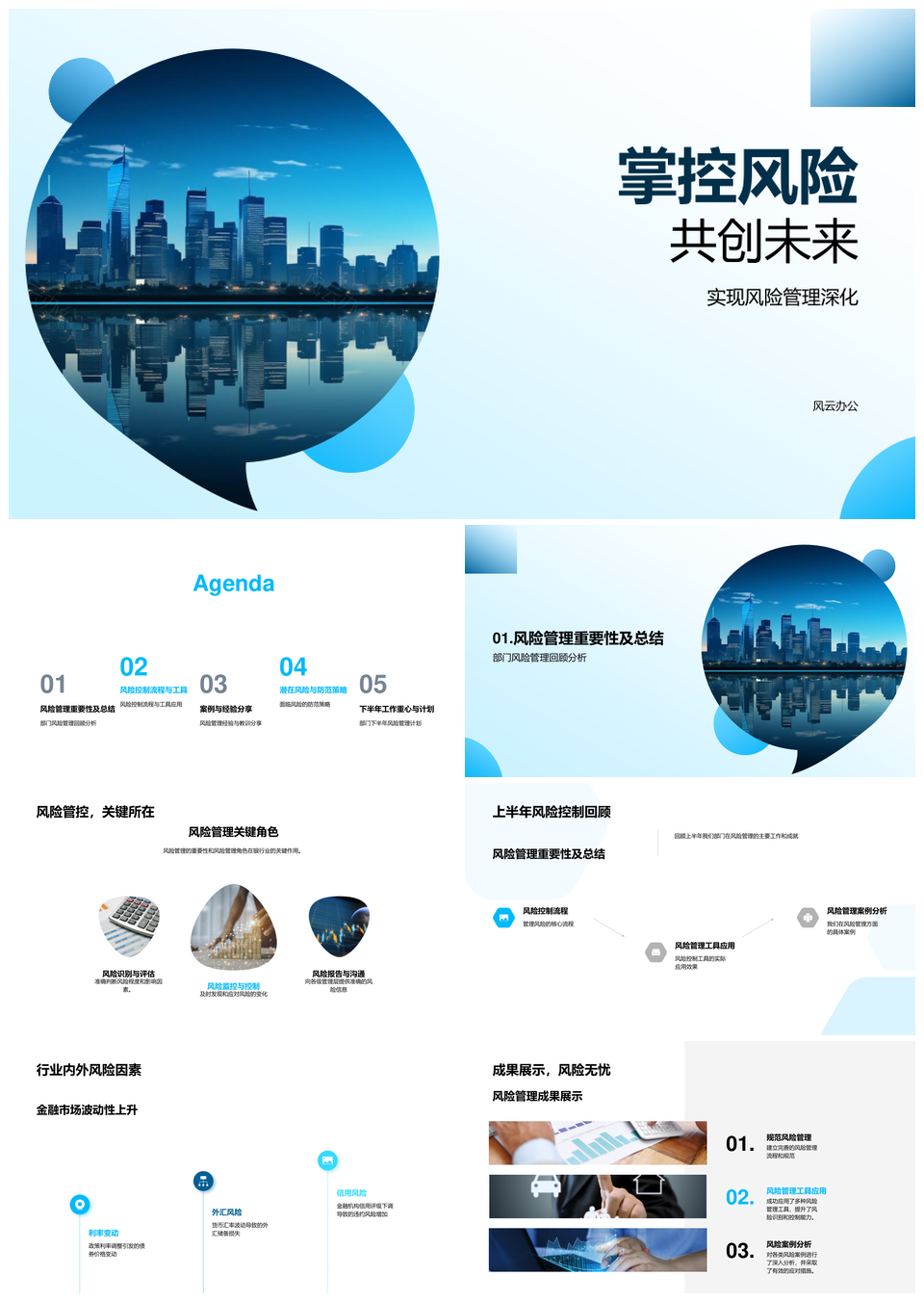风云办公提供的银行业风险管控全流程策略案例PPT模板,下载格式为pptx,一共33页,作品中文字及图均可以修改和编辑,图片更改请在作品中右键图片并更换,文字修改请直接点击文字进行修改。