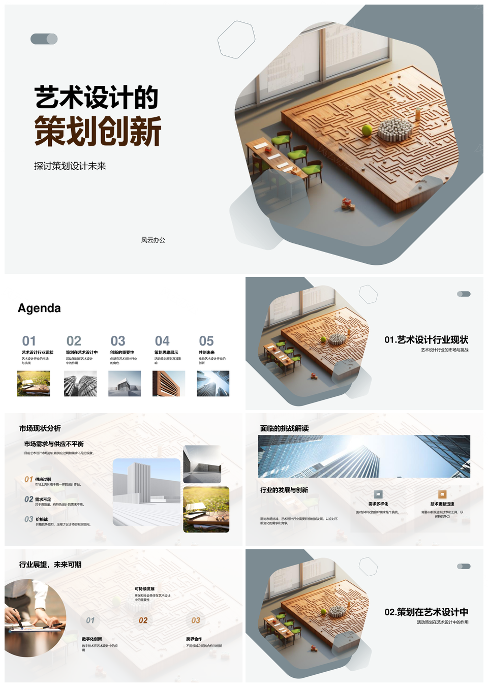 风云办公提供的艺术设计策划创新趋势案例解析PPT模板,下载格式为pptx,一共23页,作品中文字及图均可以修改和编辑,图片更改请在作品中右键图片并更换,文字修改请直接点击文字进行修改。