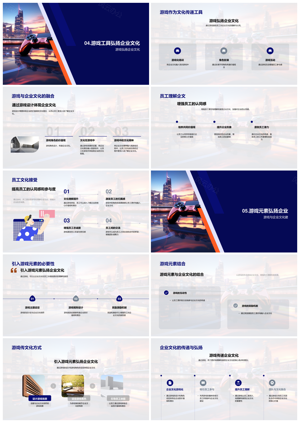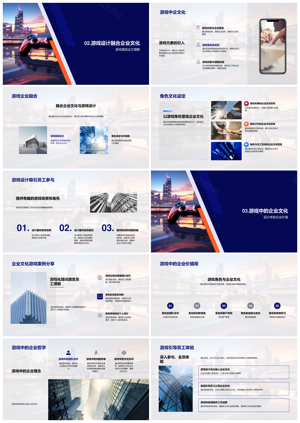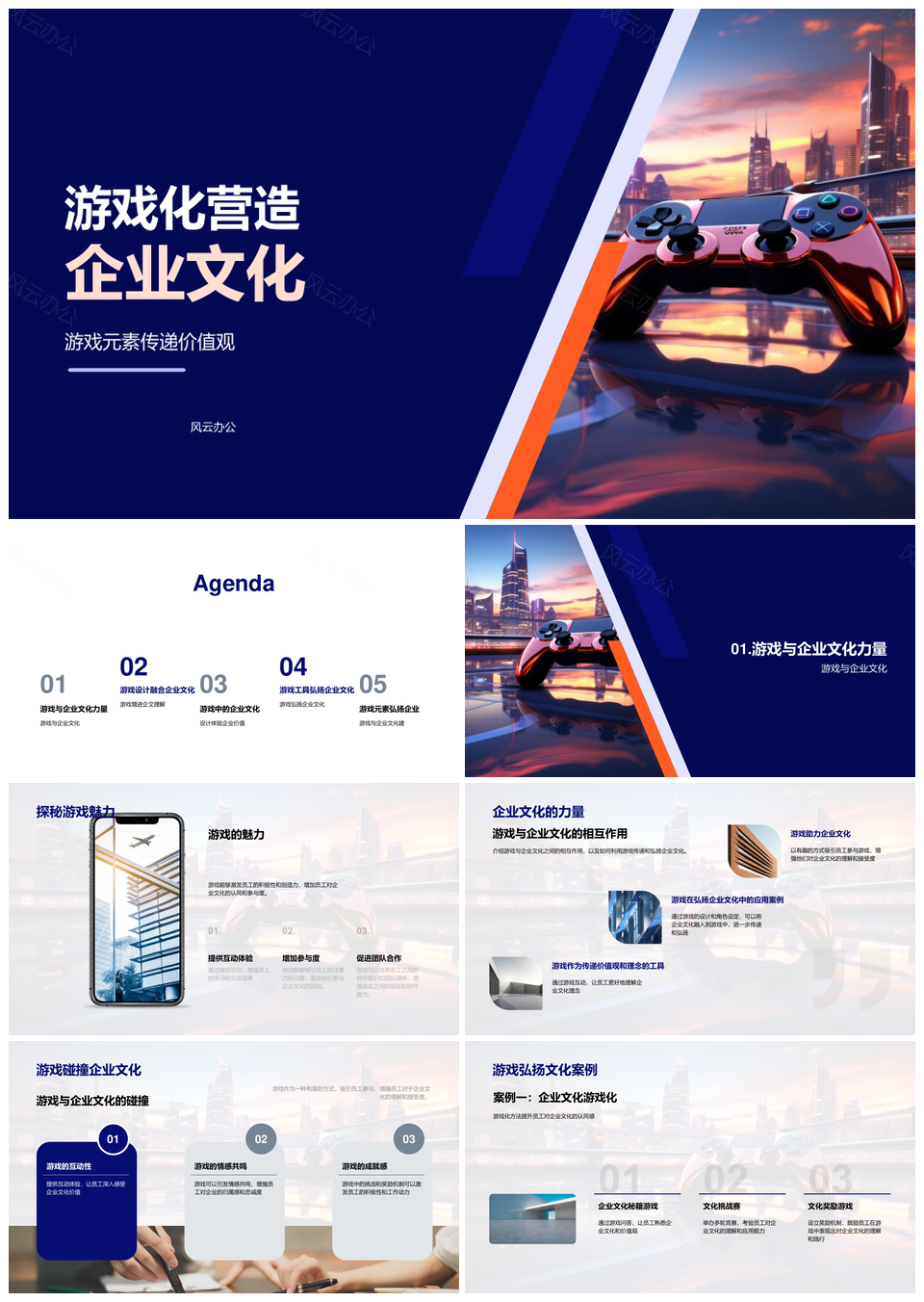 风云办公提供的游戏化企业文化设计员工参与归属体验PPT模板,下载格式为pptx,一共28页,作品中文字及图均可以修改和编辑,图片更改请在作品中右键图片并更换,文字修改请直接点击文字进行修改。