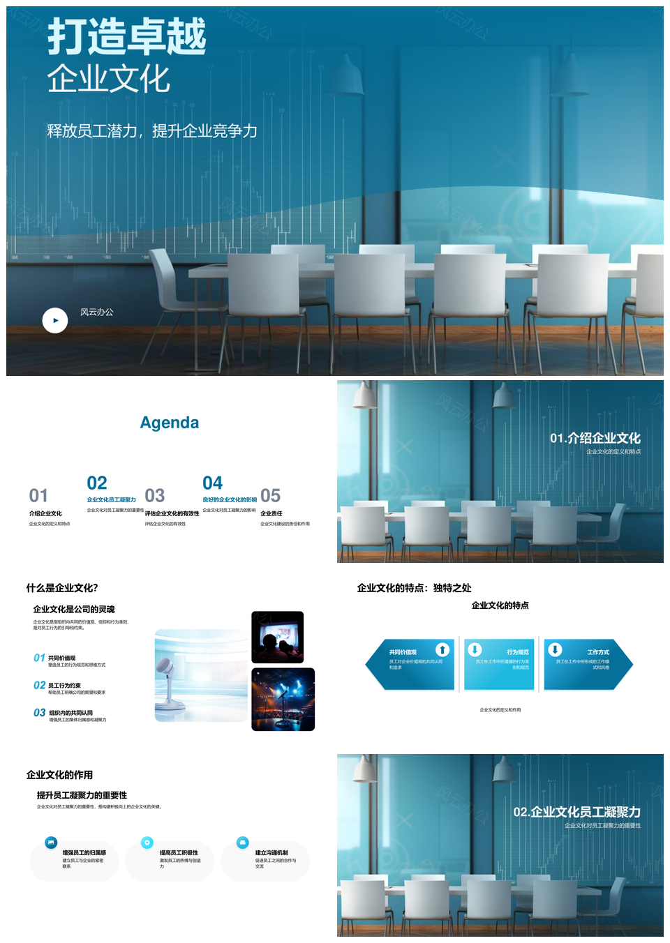 风云办公提供的构建企业文化提升员工凝聚力应对挑战PPT模板,下载格式为pptx,一共23页,作品中文字及图均可以修改和编辑,图片更改请在作品中右键图片并更换,文字修改请直接点击文字进行修改。