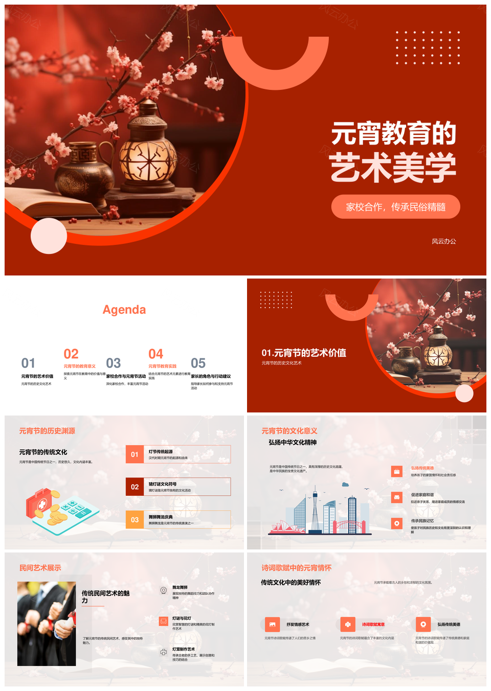风云办公提供的元宵家校共育民俗艺教传承创新PPT模板,下载格式为pptx,一共29页,作品中文字及图均可以修改和编辑,图片更改请在作品中右键图片并更换,文字修改请直接点击文字进行修改。