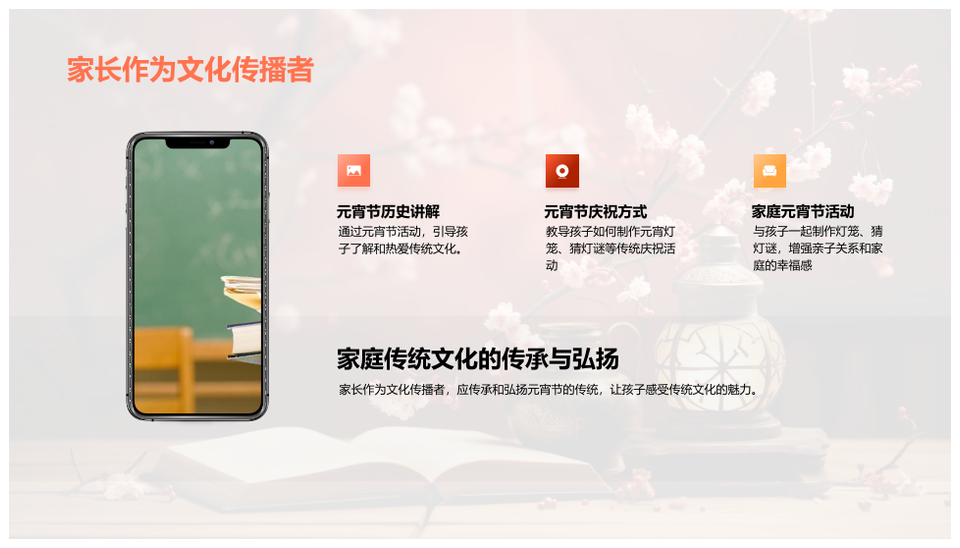 这是一张元宵家校共育民俗艺教传承创新PPT模板,包含元宵、家校、共育、民俗、艺教、传承、创新等主题内容,也可用作民俗艺教传承创新、元宵家校共育民俗艺教、家校共育民俗艺教传承、元宵家校共育传承创新、家校共育民俗艺教、民俗艺教传承、艺教传承创新、元宵民俗艺教、家校共育传承创新、元宵家校共育、民俗艺教、艺教传承、传承创新、家校共育艺教、民俗传承等PPT场景使用。