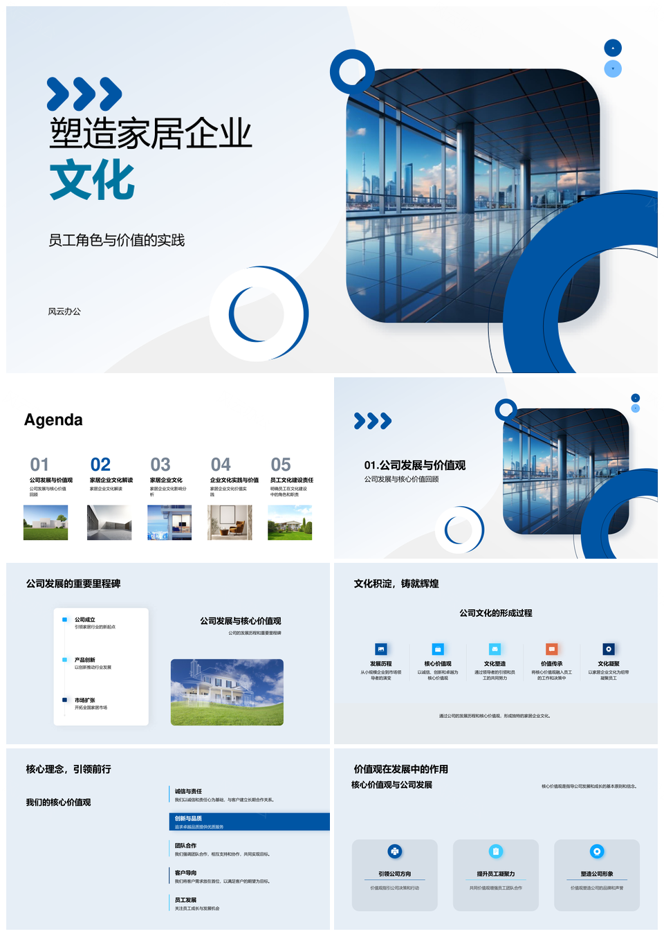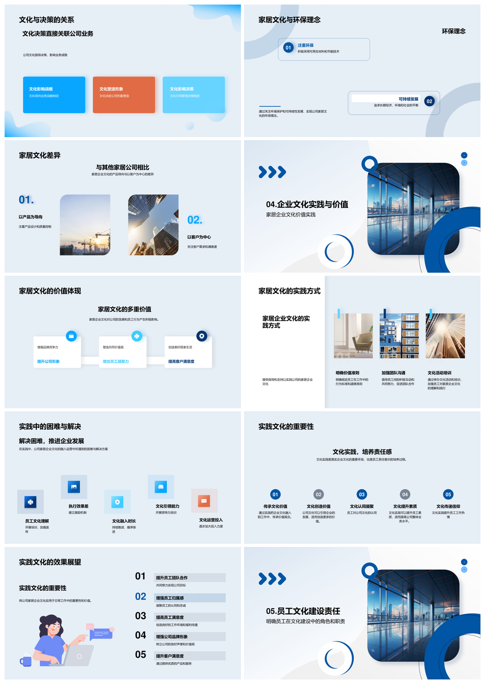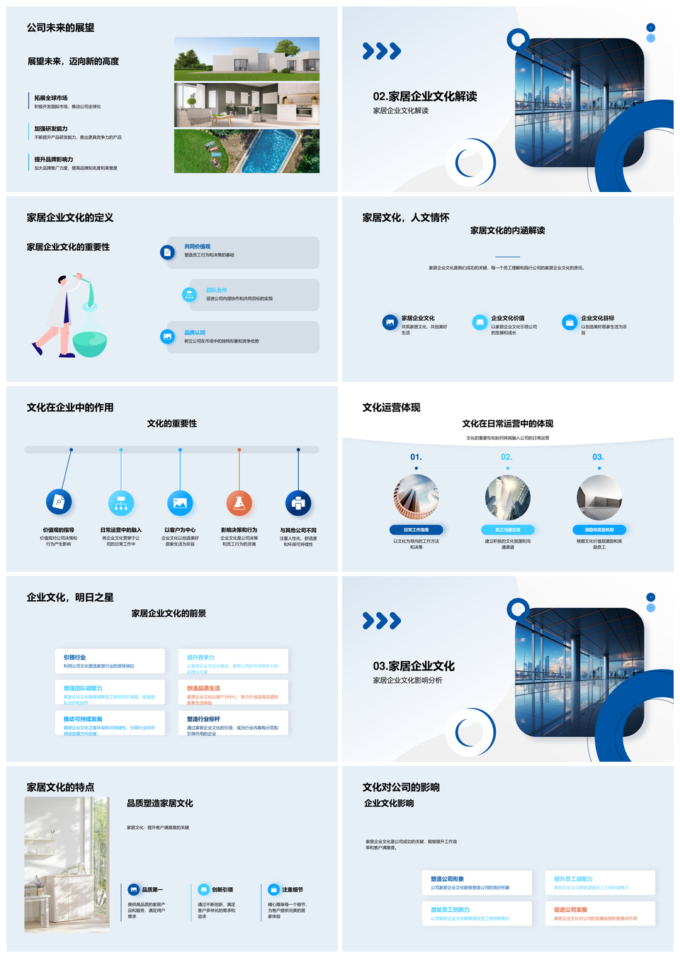 风云办公提供的家居企业文化建设推动环保高效发展PPT模板,下载格式为pptx,一共33页,作品中文字及图均可以修改和编辑,图片更改请在作品中右键图片并更换,文字修改请直接点击文字进行修改。