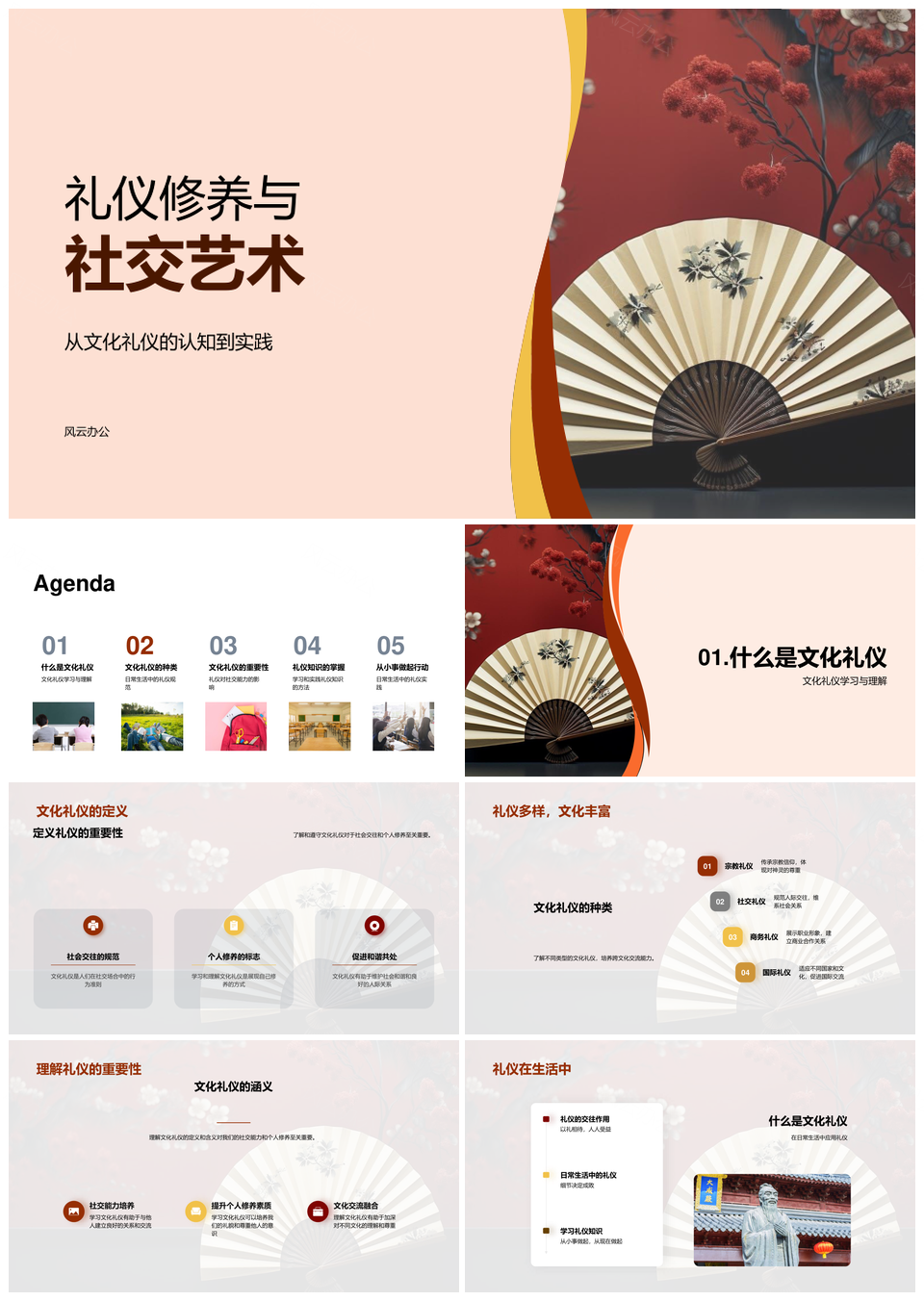 风云办公提供的礼仪修养与社交生活文化传统PPT模板,下载格式为pptx,一共33页,作品中文字及图均可以修改和编辑,图片更改请在作品中右键图片并更换,文字修改请直接点击文字进行修改。