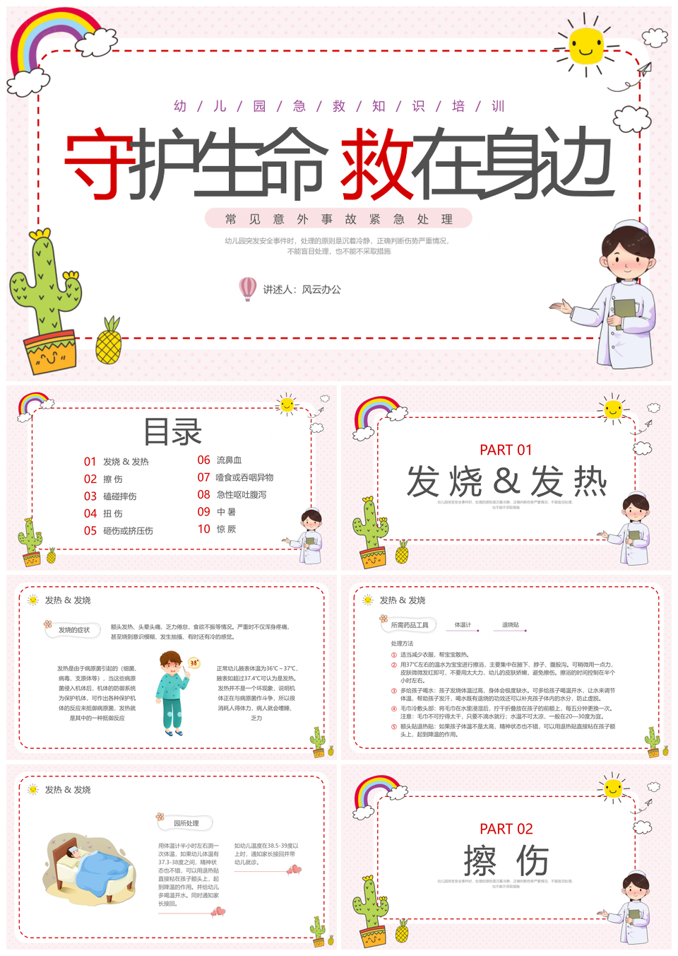 风云办公提供的2025幼儿园安全急救知识卡通培训PPT课件,下载格式为pptx,一共34页,作品中文字及图均可以修改和编辑,图片更改请在作品中右键图片并更换,文字修改请直接点击文字进行修改。