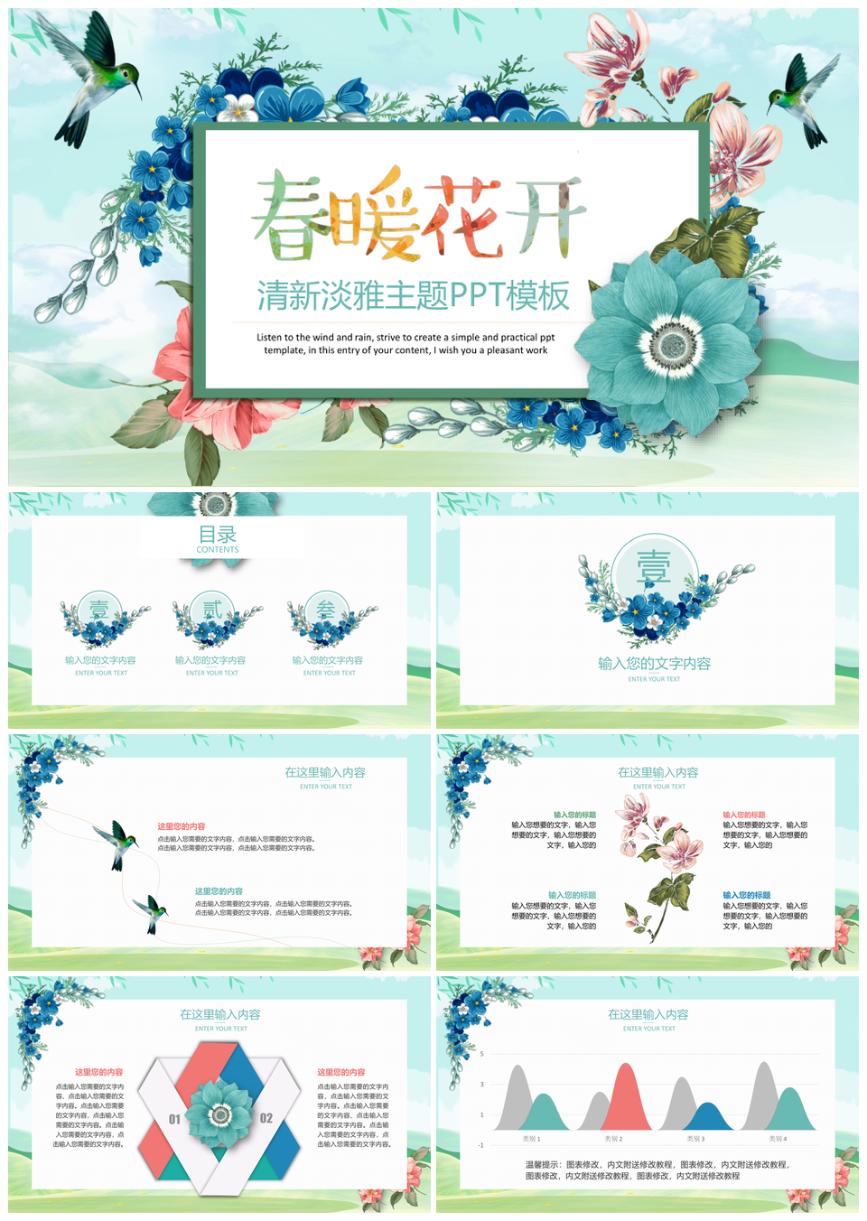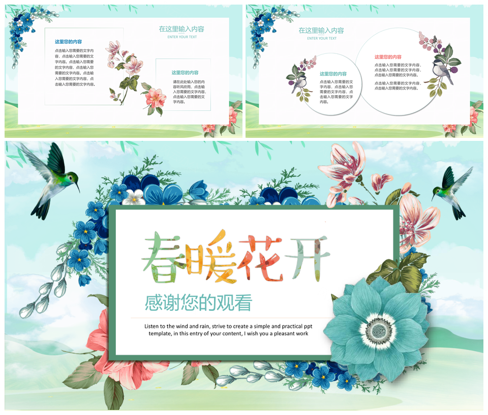 绿色小清新春天春暖花开PPT模板