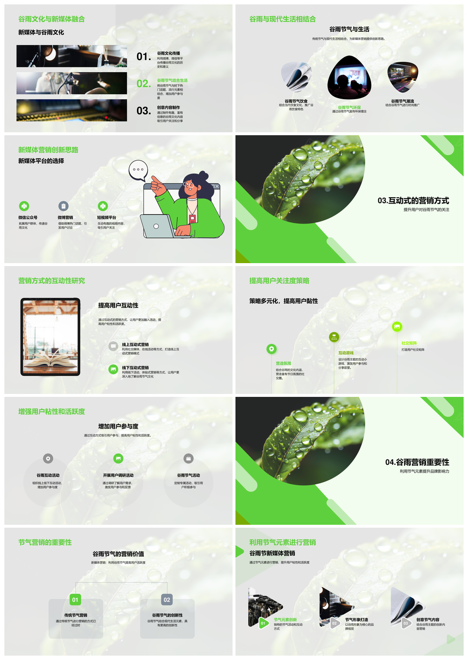 谷雨节气新媒体互动营销策略提升用户粘性活跃文化PPT模板推荐