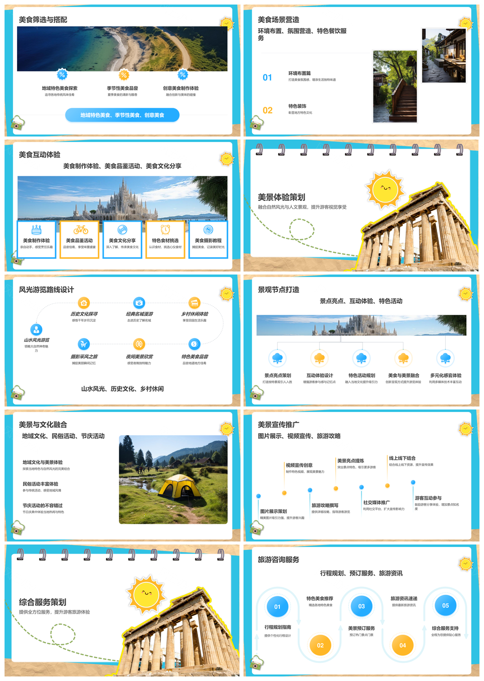 这是一张暑期旅游美食美景视觉活动综合体验PPT模板,包含暑期、旅游、美食、美景、视觉、活动、综合、体验等主题内容,也可用作暑期旅游美食美景、旅游美食美景视觉、美食美景视觉活动、美景视觉活动综合、视觉活动综合体验、暑期旅游美食、旅游美食美景、美食美景视觉、美景视觉活动、视觉活动综合、活动综合体验、暑期旅游、旅游美食、美食美景、美景视觉等PPT场景使用。