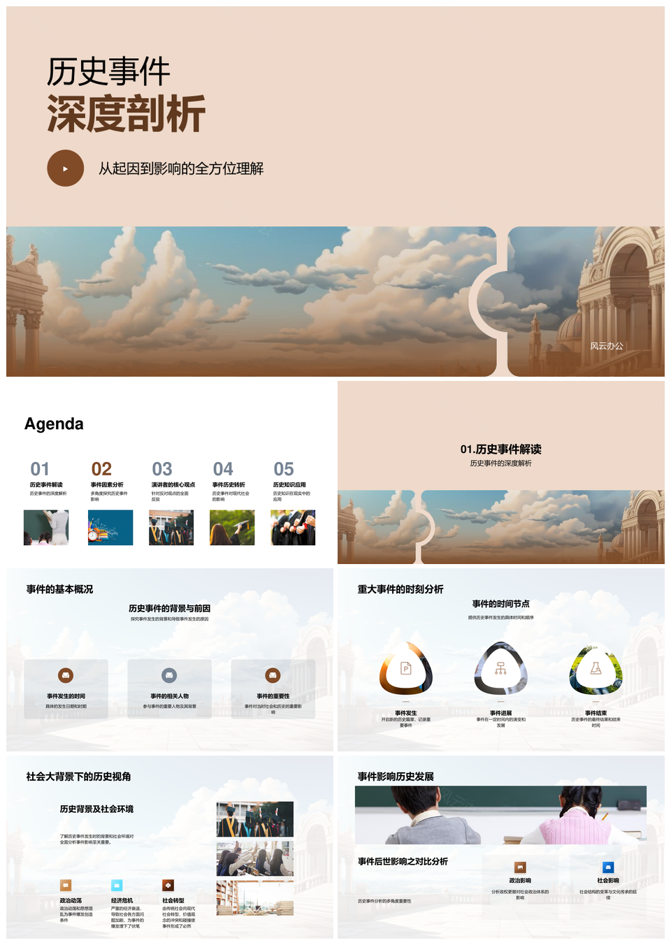 风云办公提供的历史事件多维剖析全方位理解古代卷轴PPT模板,下载格式为pptx,一共27页,作品中文字及图均可以修改和编辑,图片更改请在作品中右键图片并更换,文字修改请直接点击文字进行修改。