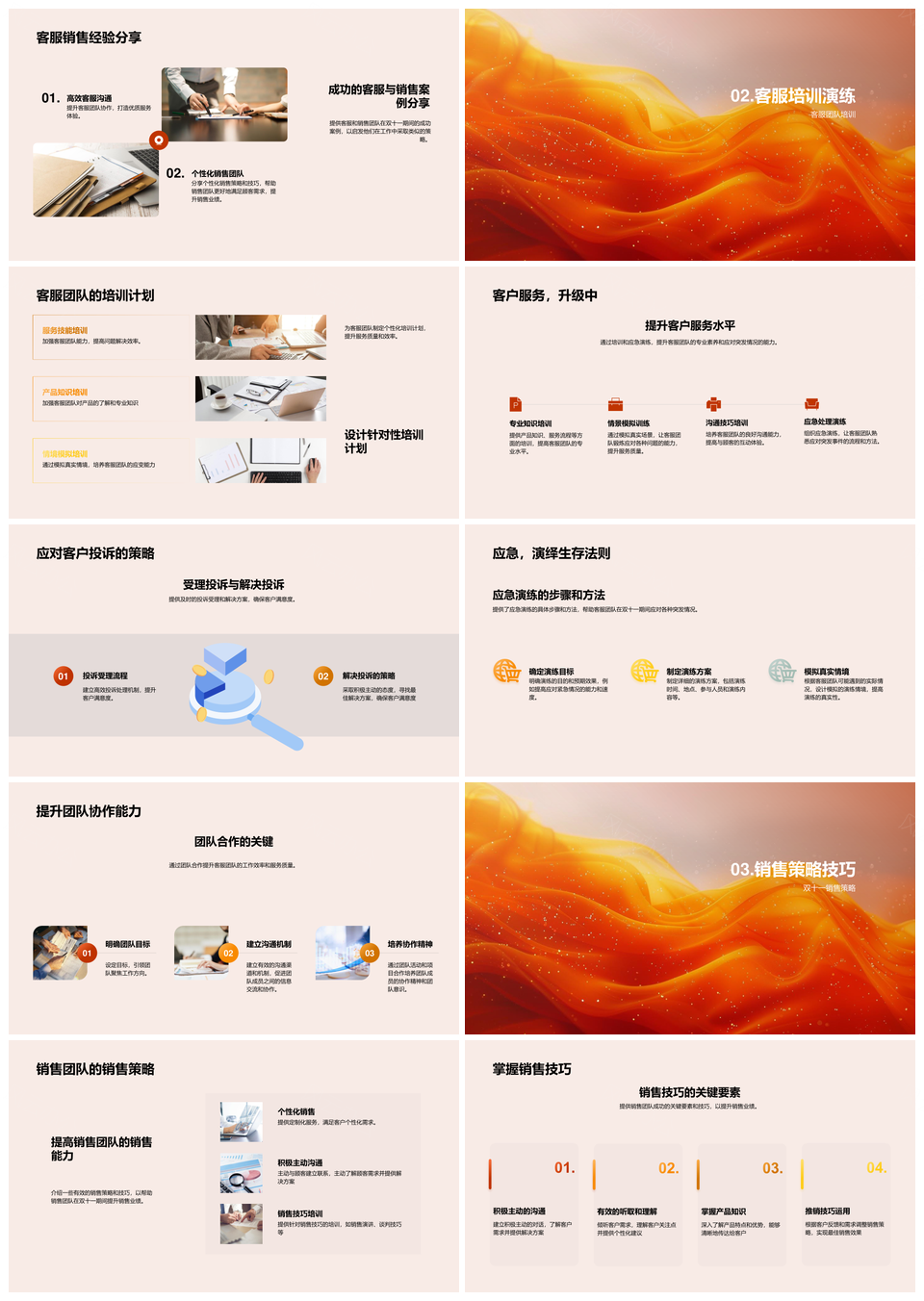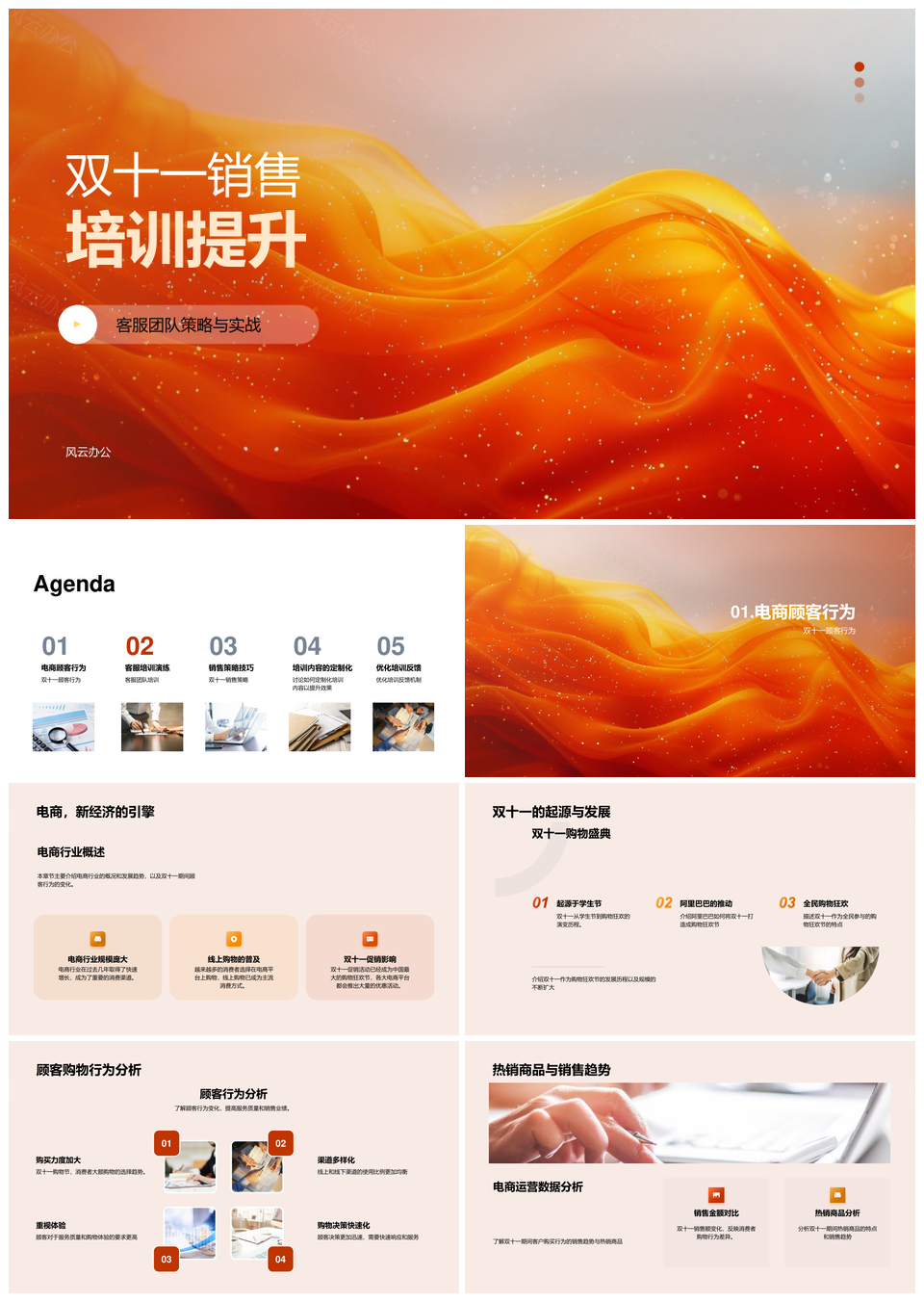 这是一张双十一电商运营经理顾客行为分析客服销售经验团队培训PPT模板,包含双十一、电商运营、经理、顾客、行为分析、客服、销售、经验、团队、培训等主题内容,也可用作双十一电商运营经理顾客、电商运营经理顾客行为分析、运营经理顾客行为分析客服、顾客行为分析客服销售经验、行为分析客服销售经验团队培训、双十一电商运营经理、电商运营经理顾客、运营经理顾客行为分析、顾客行为分析客服、行为分析客服销售经验、客服销售经验团队培训、双十一电商、电商运营经理、运营经理顾客、顾客行为分析等PPT场景使用。 风云办公提供的双十一电商运营经理顾客行为分析客服销售经验团队培训PPT模板,下载格式为pptx,一共33页,作品中文字及图均可以修改和编辑,图片更改请在作品中右键图片并更换,文字修改请直接点击文字进行修改。