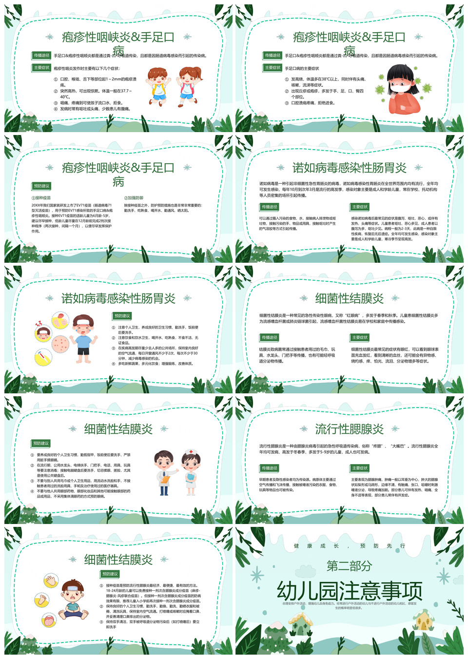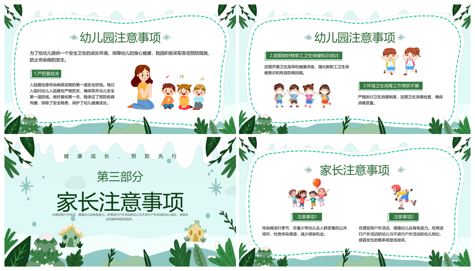 2025绿色卡通幼儿冬季传染病预防宣传科普PPT模板推荐