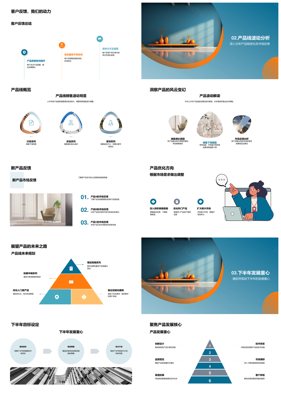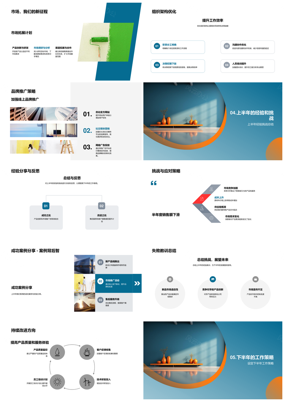 这是一张家居行业半年总结战略调整产品线优化市场反馈PPT模板,包含家居行业、半年总结、战略调整、产品线、优化、市场反馈等主题内容,也可用作家居行业半年总结战略调整产品线优化、半年总结战略调整产品线优化市场反馈、家居行业战略调整产品线优化市场反馈、家居行业半年总结战略调整、半年总结战略调整市场反馈、战略调整产品线优化市场反馈、家居行业产品线优化市场反馈、家居行业半年总结、半年总结战略调整、战略调整产品线优化、产品线优化市场反馈、家居行业战略调整、家居行业产品线优化、家居行业市场反馈、战略调整市场反馈等PPT场景使用。 风云办公提供的家居行业半年总结战略调整产品线优化市场反馈PPT模板,下载格式为pptx,一共33页,作品中文字及图均可以修改和编辑,图片更改请在作品中右键图片并更换,文字修改请直接点击文字进行修改。