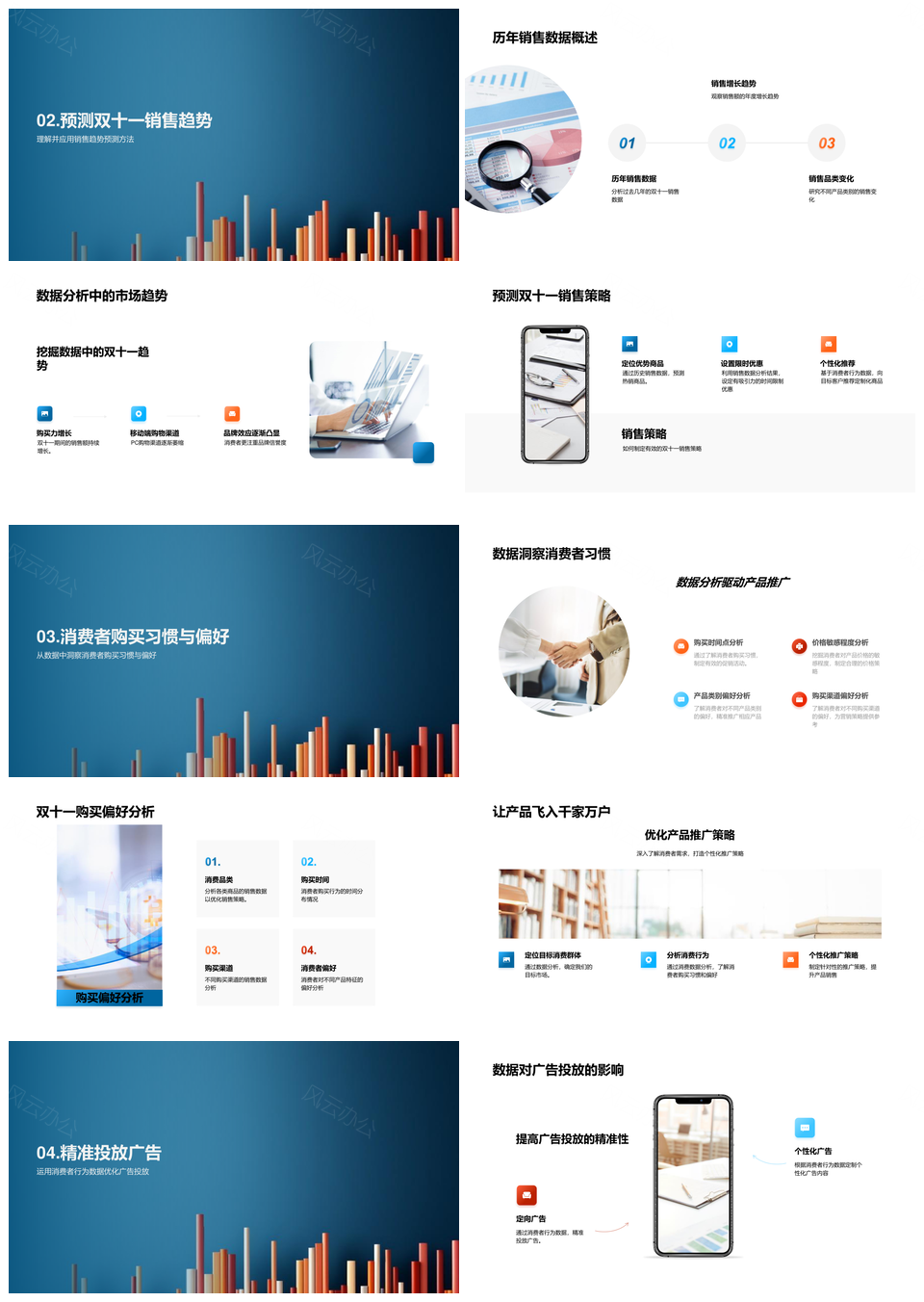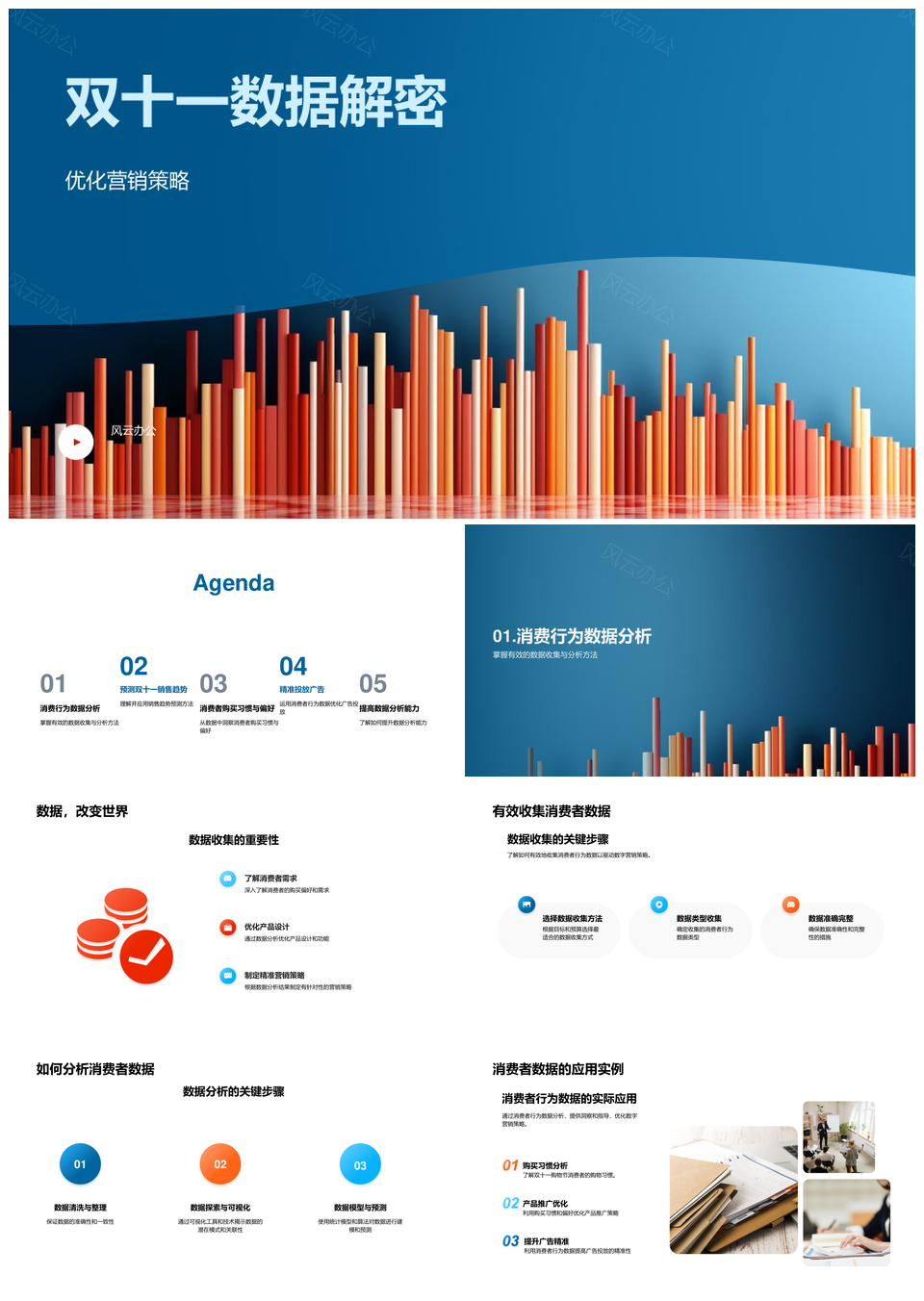 这是一张双十一数据解密优化营销策略消费偏好市场趋势PPT模板,包含数据、解密、优化、营销策略、消费偏好、市场趋势等主题内容,也可用作双十一数据解密优化营销策略、数据解密优化营销策略消费偏好、优化营销策略消费偏好市场趋势、双十一优化营销策略消费偏好、双十一营销策略消费偏好市场趋势、数据解密优化消费偏好市场趋势、营销策略消费偏好市场趋势、双十一数据解密优化、数据解密优化营销策略、优化营销策略市场趋势、双十一数据解密、数据解密优化、优化营销策略、消费偏好市场趋势、营销策略消费偏好等PPT场景使用。 风云办公提供的双十一数据解密优化营销策略消费偏好市场趋势PPT模板,下载格式为pptx,一共25页,作品中文字及图均可以修改和编辑,图片更改请在作品中右键图片并更换,文字修改请直接点击文字进行修改。