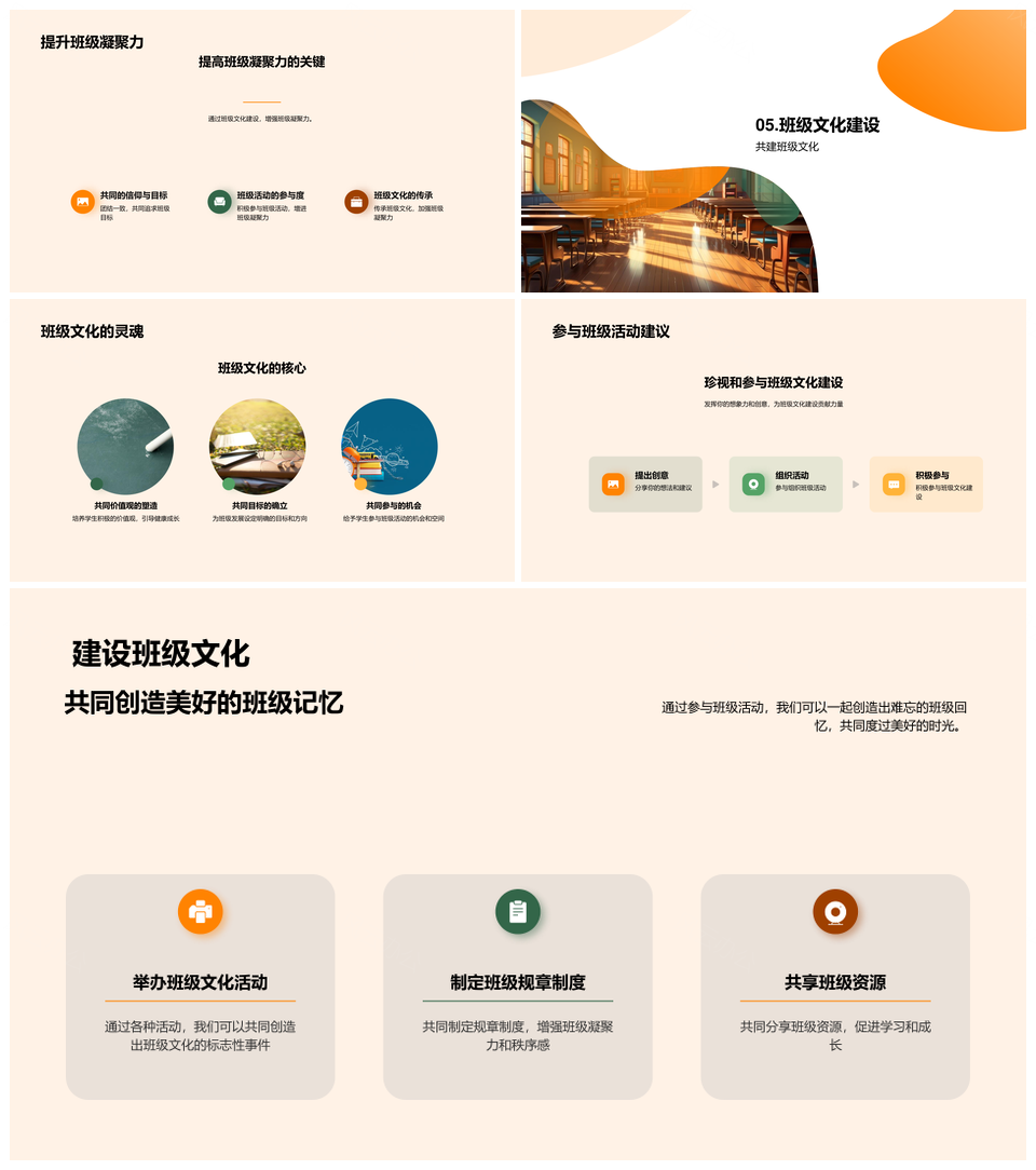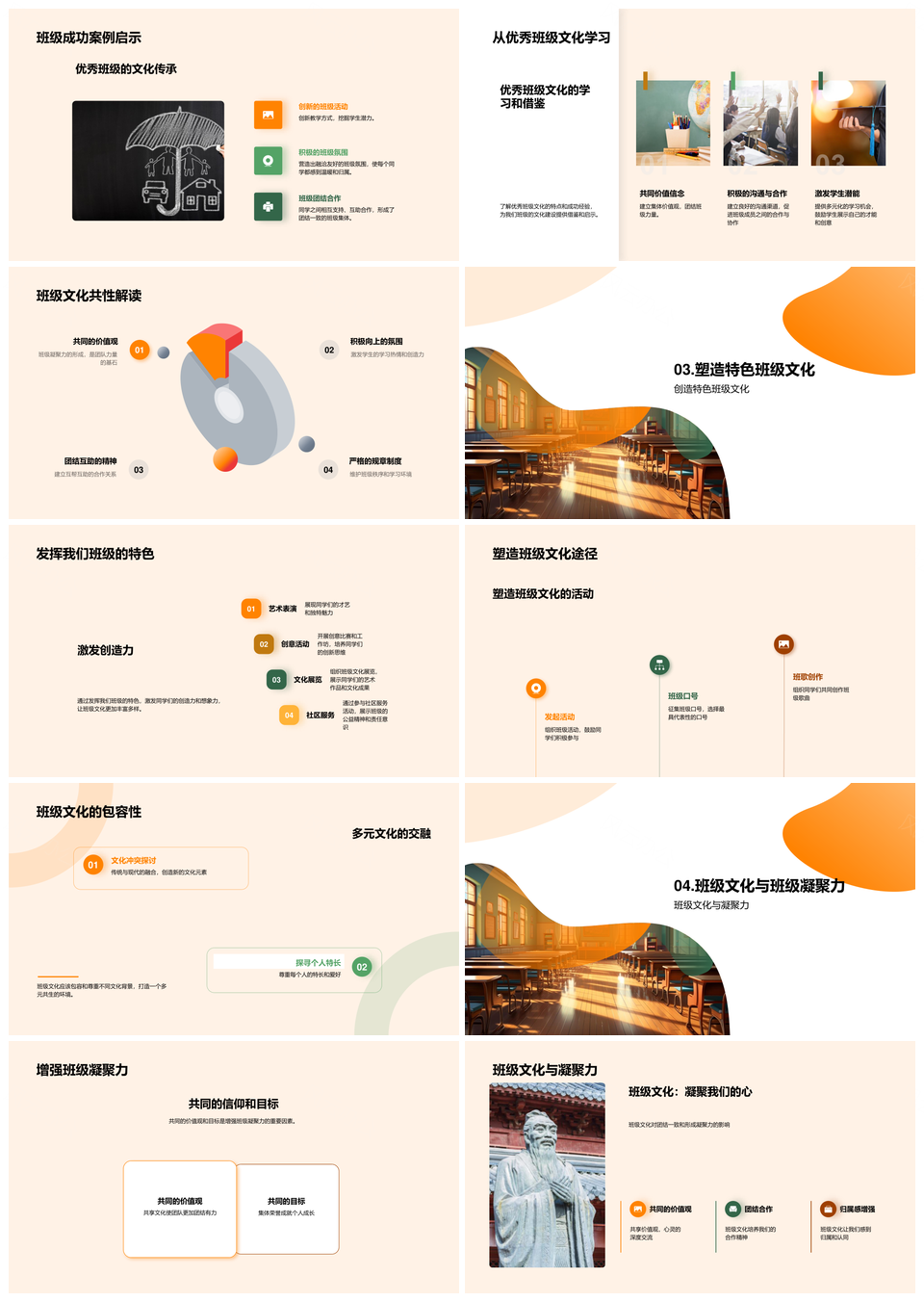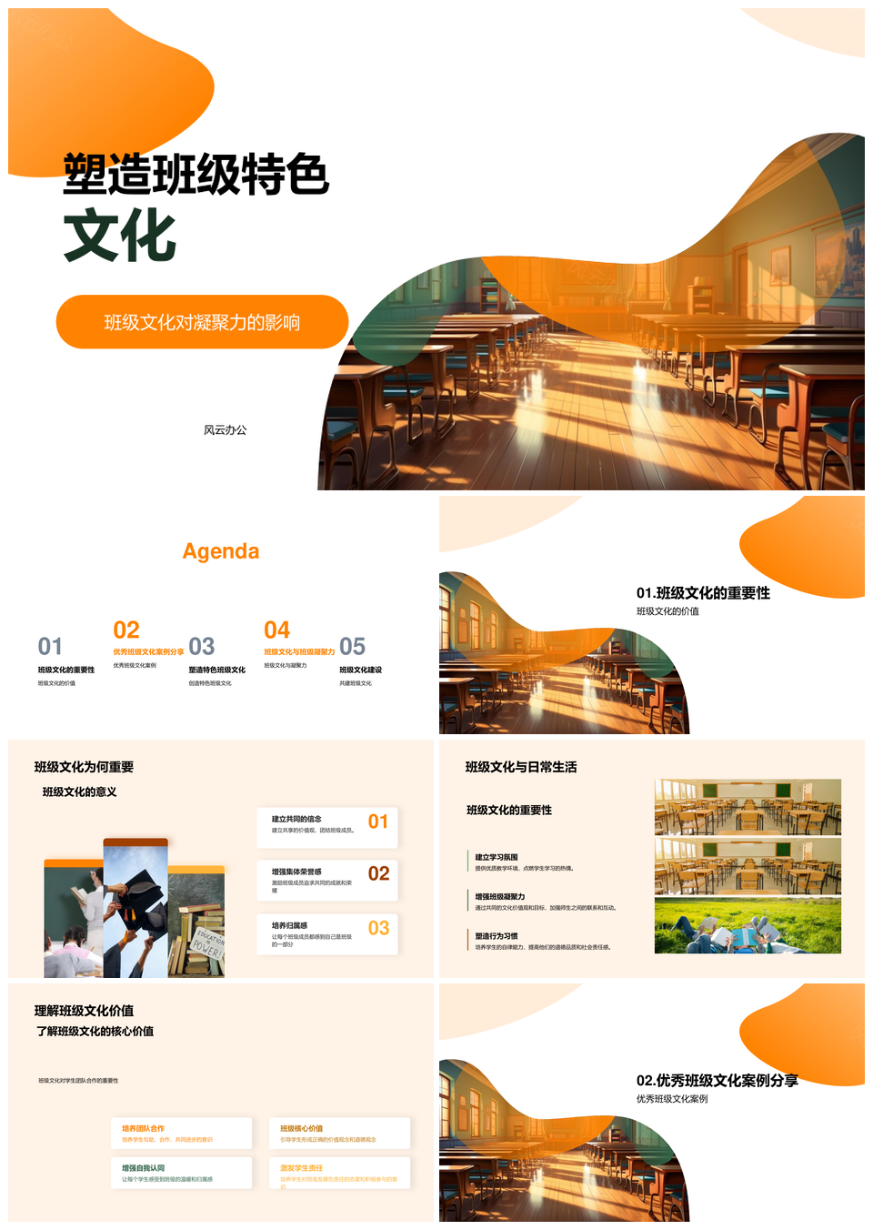 风云办公提供的班级特色文化活动凝聚教育成功案例PPT模板,下载格式为pptx,一共23页,作品中文字及图均可以修改和编辑,图片更改请在作品中右键图片并更换,文字修改请直接点击文字进行修改。