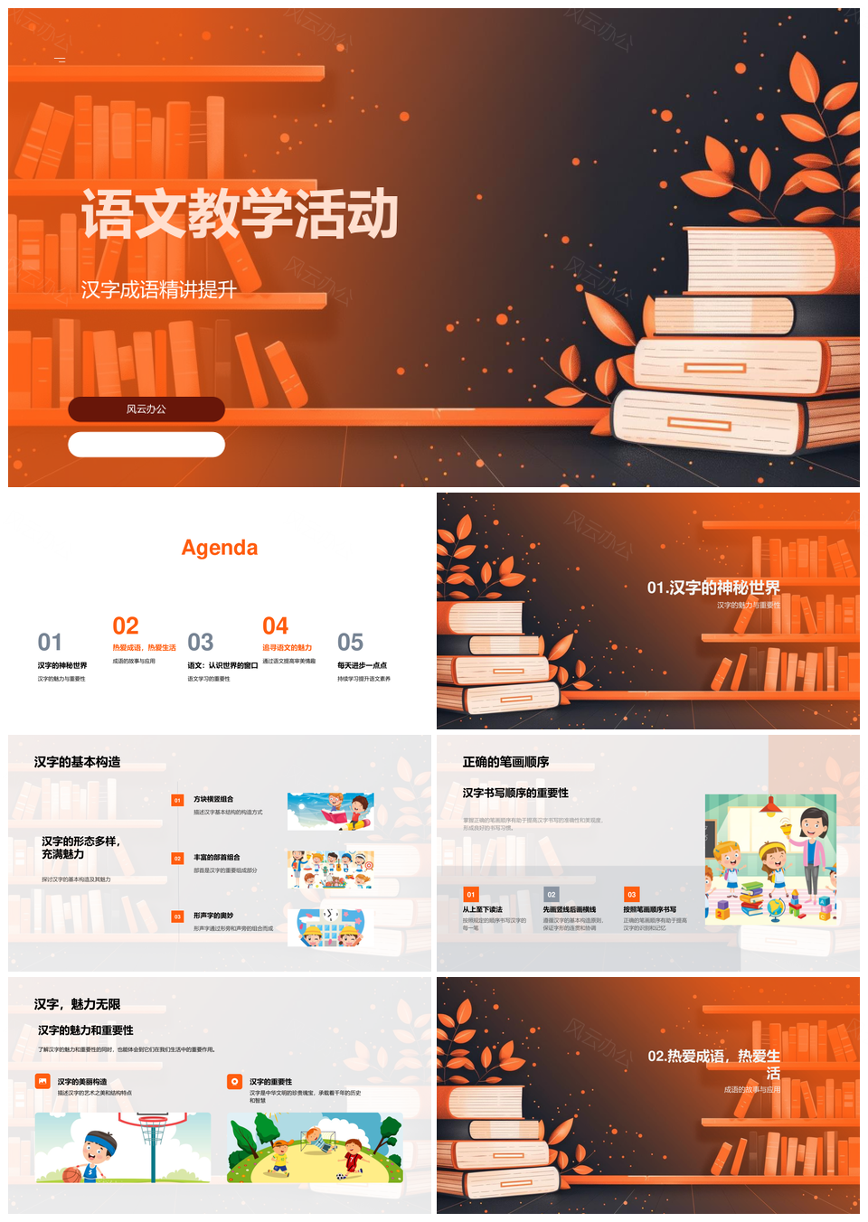 风云办公提供的语文汉字构造笔画成语精讲教学PPT模板,下载格式为pptx,一共23页,作品中文字及图均可以修改和编辑,图片更改请在作品中右键图片并更换,文字修改请直接点击文字进行修改。