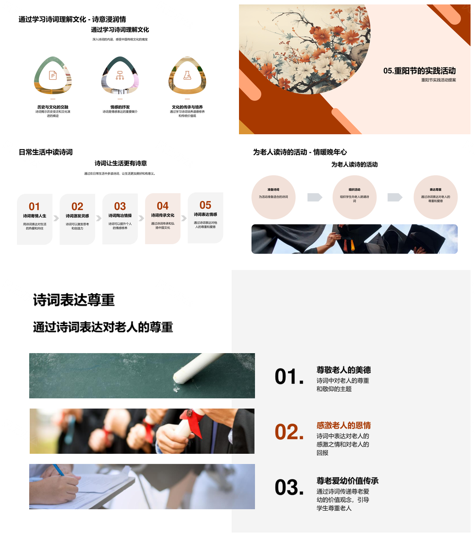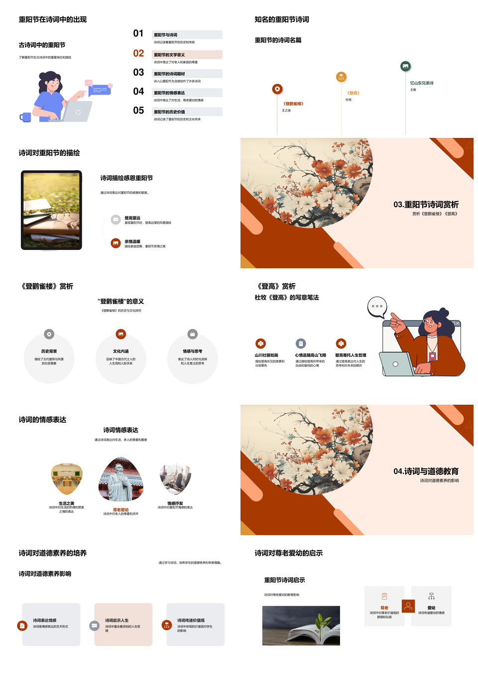 这是一张重阳诗词尊老道德传统登高菊花赏析PPT模板,包含重阳、诗词、尊老、道德、传统、登高、菊花、赏析等主题内容,也可用作重阳登高菊花赏析、重阳尊老道德传统、诗词尊老道德传统、尊老道德传统登高、传统登高菊花赏析、重阳诗词赏析、尊老道德传统、传统登高菊花、登高菊花赏析、道德传统登高、重阳诗词、尊老道德、道德传统、传统登高、登高菊花等PPT场景使用。
