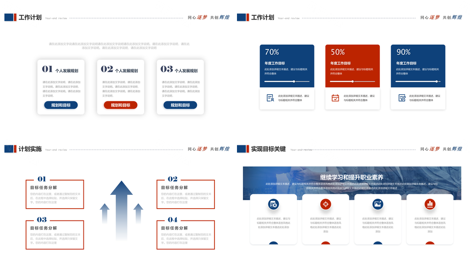 2025红蓝撞色简约商务龙年年终总结新年计划工作PPT模板推荐