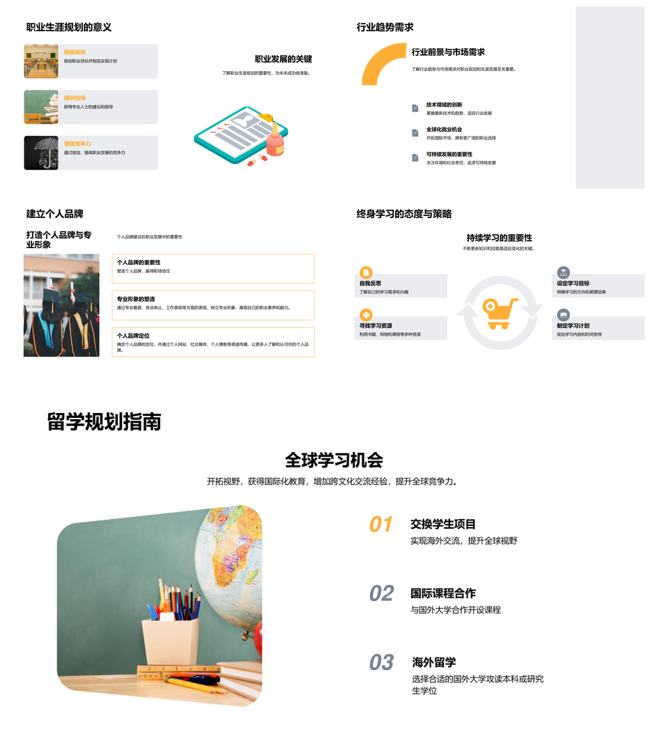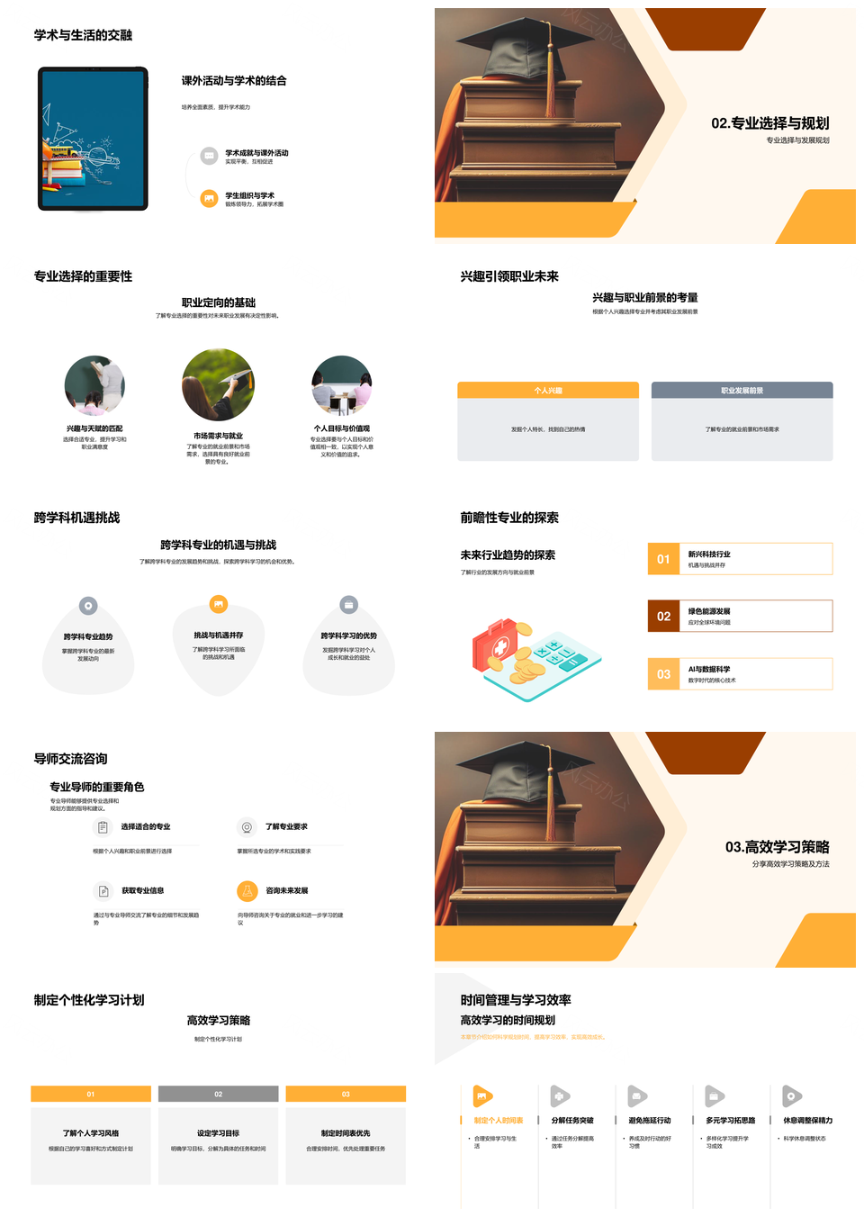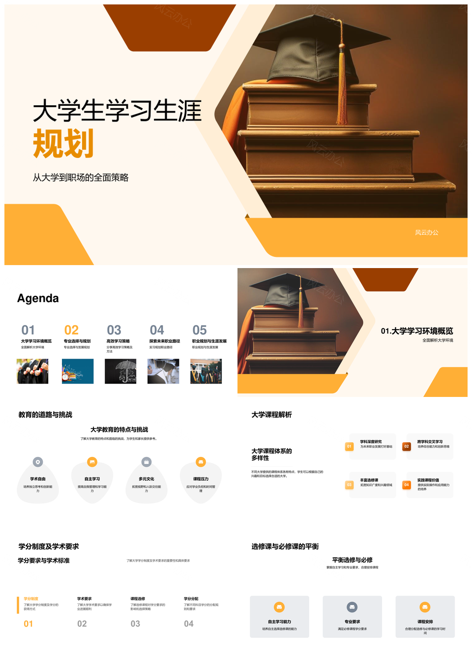 风云办公提供的大学生专业选择与生涯规划PPT模板,下载格式为pptx,一共33页,作品中文字及图均可以修改和编辑,图片更改请在作品中右键图片并更换,文字修改请直接点击文字进行修改。