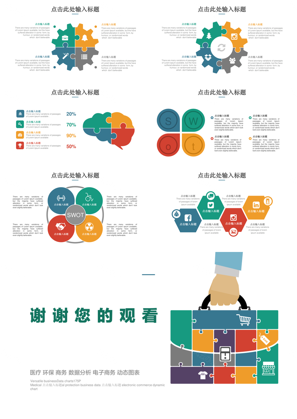 医疗环保商务数据分析电子商务动态图表PPT模板推荐