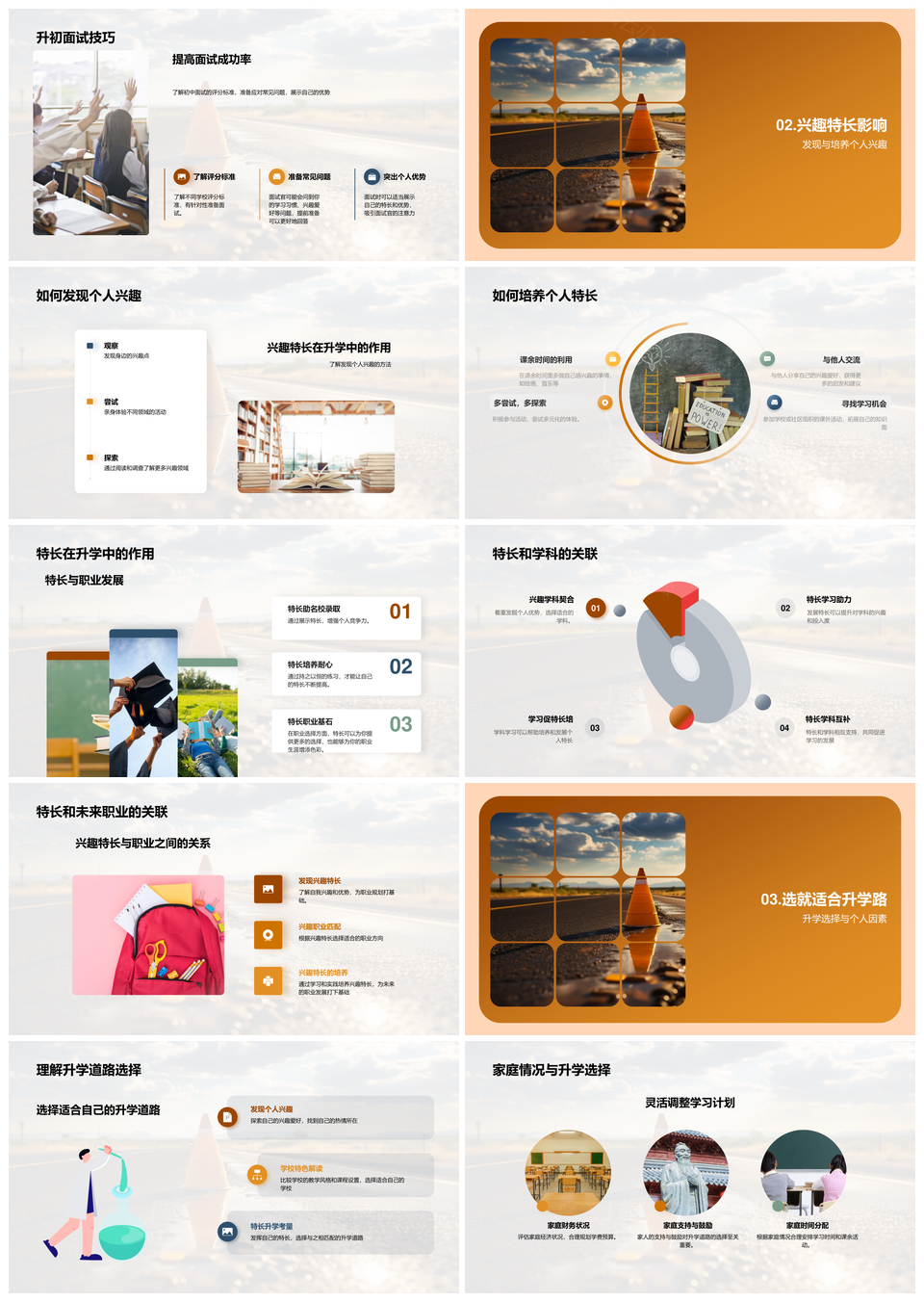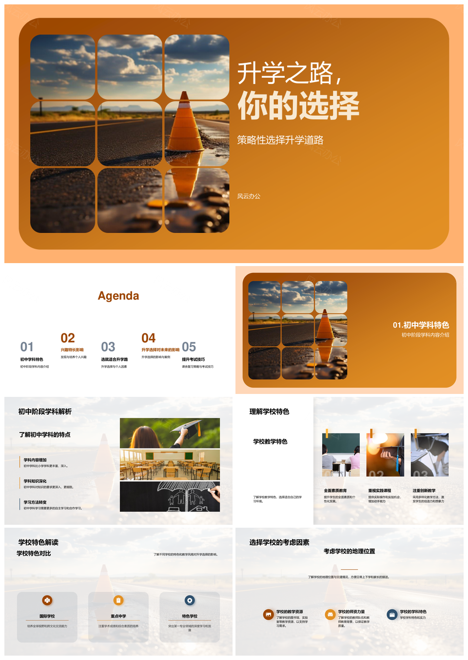 风云办公提供的升学策略选校学科特长生涯规划PPT模板,下载格式为pptx,一共33页,作品中文字及图均可以修改和编辑,图片更改请在作品中右键图片并更换,文字修改请直接点击文字进行修改。