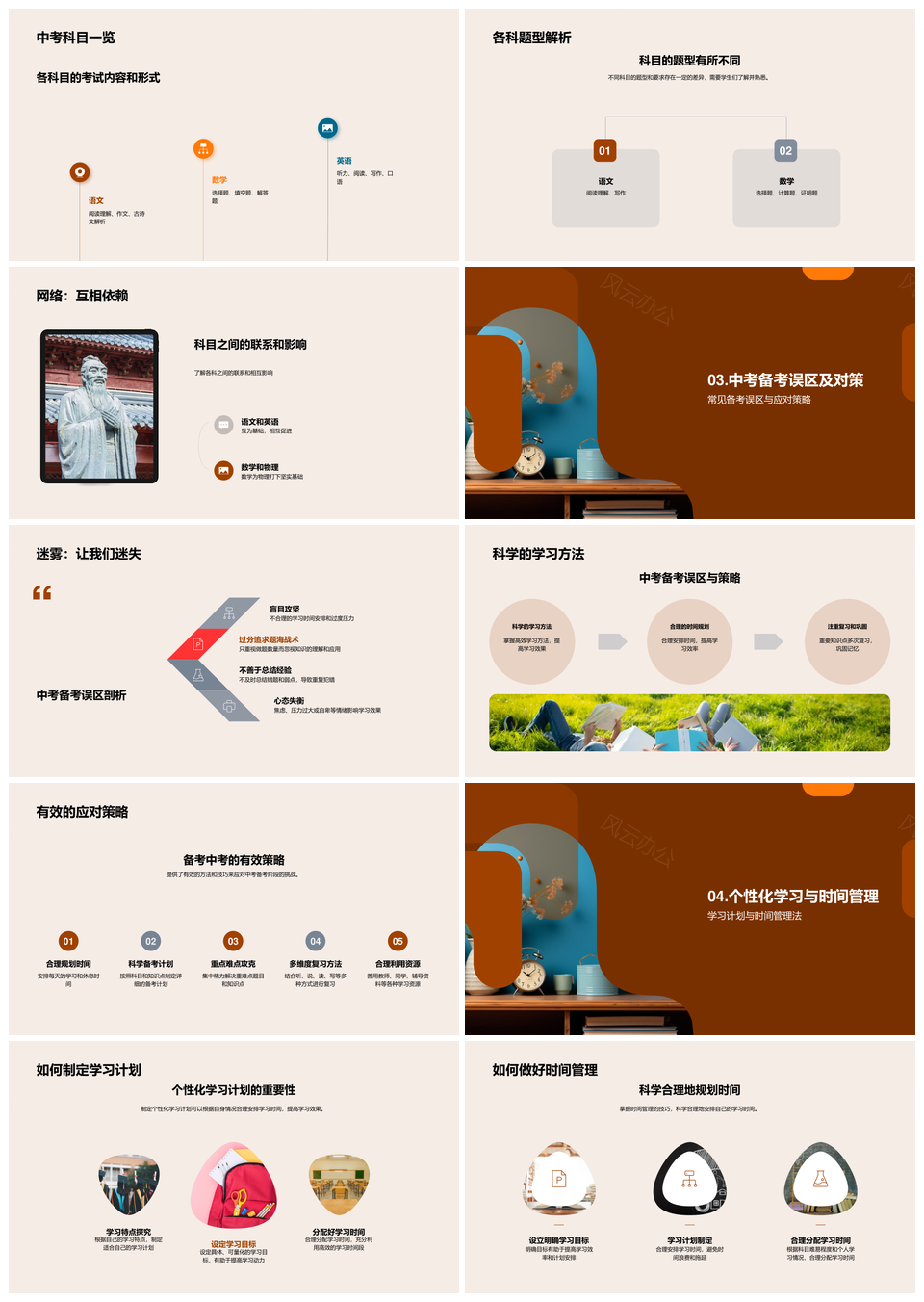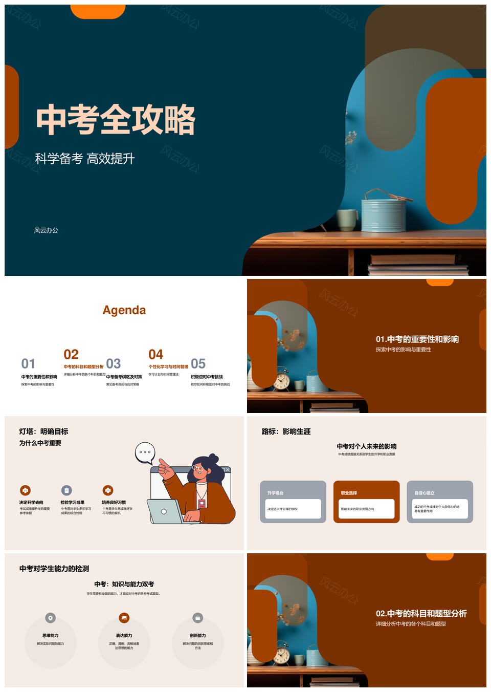 风云办公提供的中考全攻略科学备考高效提升科目解析PPT模板,下载格式为pptx,一共24页,作品中文字及图均可以修改和编辑,图片更改请在作品中右键图片并更换,文字修改请直接点击文字进行修改。