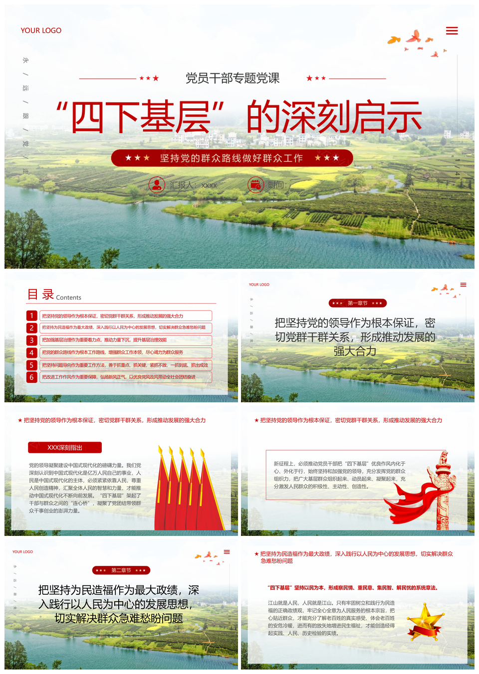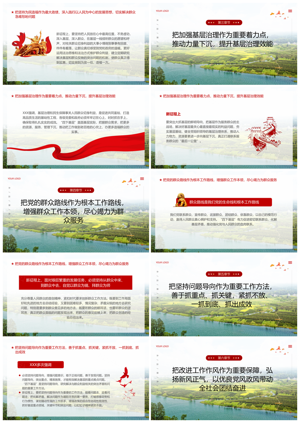 风云办公提供的基层党建群众路线主题教育党课课件,下载格式为pptx,一共20页,作品中文字及图均可以修改和编辑,图片更改请在作品中右键图片并更换,文字修改请直接点击文字进行修改。