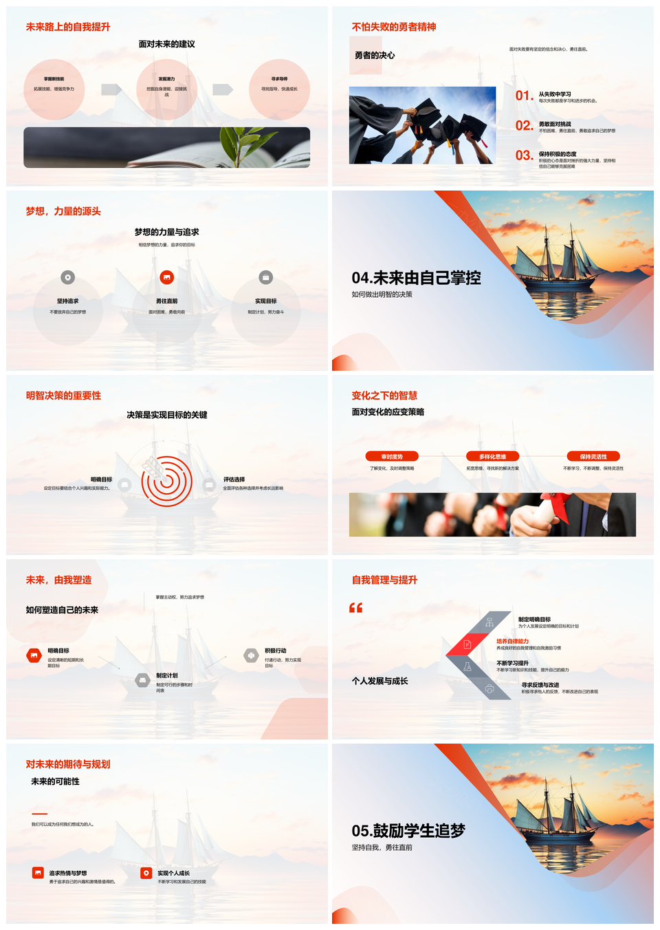 风云办公提供的六年级扬帆学海成长挑战未来航向PPT模板,下载格式为pptx,一共33页,作品中文字及图均可以修改和编辑,图片更改请在作品中右键图片并更换,文字修改请直接点击文字进行修改。