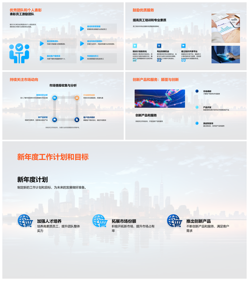 这是一张银行业绩战略规划服务创新科技人才投资PPT模板,包含银行、业绩、战略、规划、服务、创新、科技、人才、投资等主题内容,也可用作银行业绩战略规划、战略规划服务创新、服务创新科技人才、创新科技人才投资、战略规划服务、规划服务创新、服务创新科技、创新科技人才、科技人才投资、银行业绩、战略规划、服务创新、科技人才、人才投资、业绩战略规划等PPT场景使用。 风云办公提供的银行业绩战略规划服务创新科技人才投资PPT模板,下载格式为pptx,一共33页,作品中文字及图均可以修改和编辑,图片更改请在作品中右键图片并更换,文字修改请直接点击文字进行修改。