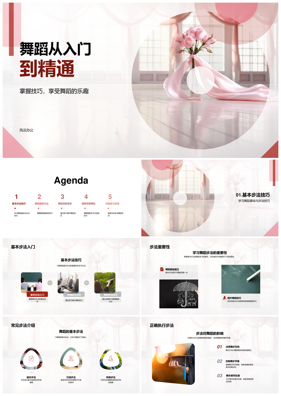风云办公提供的舞蹈步法技巧编排实践入门到精通PPT模板,下载格式为pptx,一共33页,作品中文字及图均可以修改和编辑,图片更改请在作品中右键图片并更换,文字修改请直接点击文字进行修改。