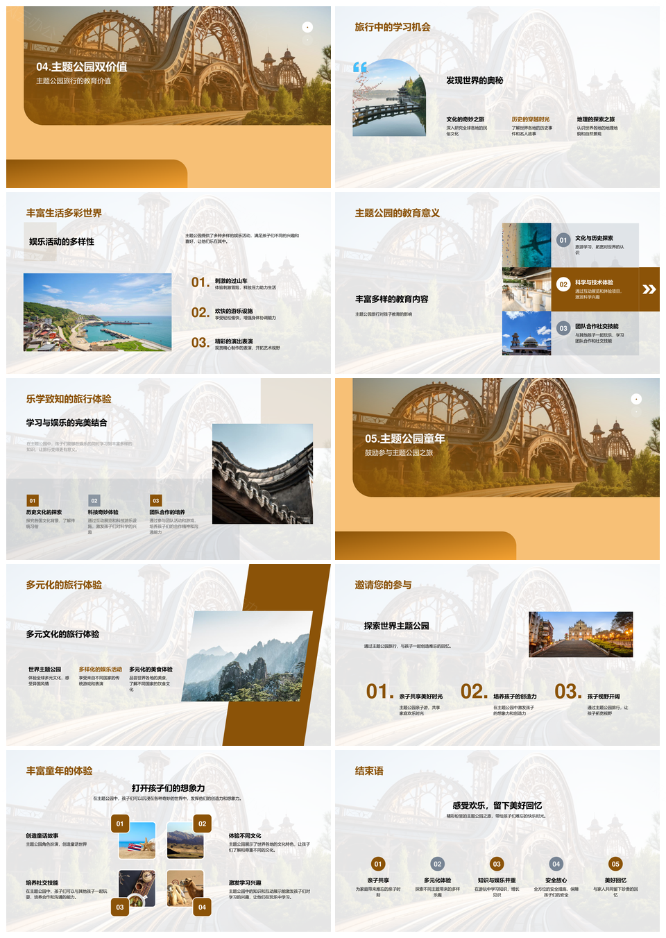 2025家庭旅游胜地小学生主题公园动物园海滨山区PPT模板