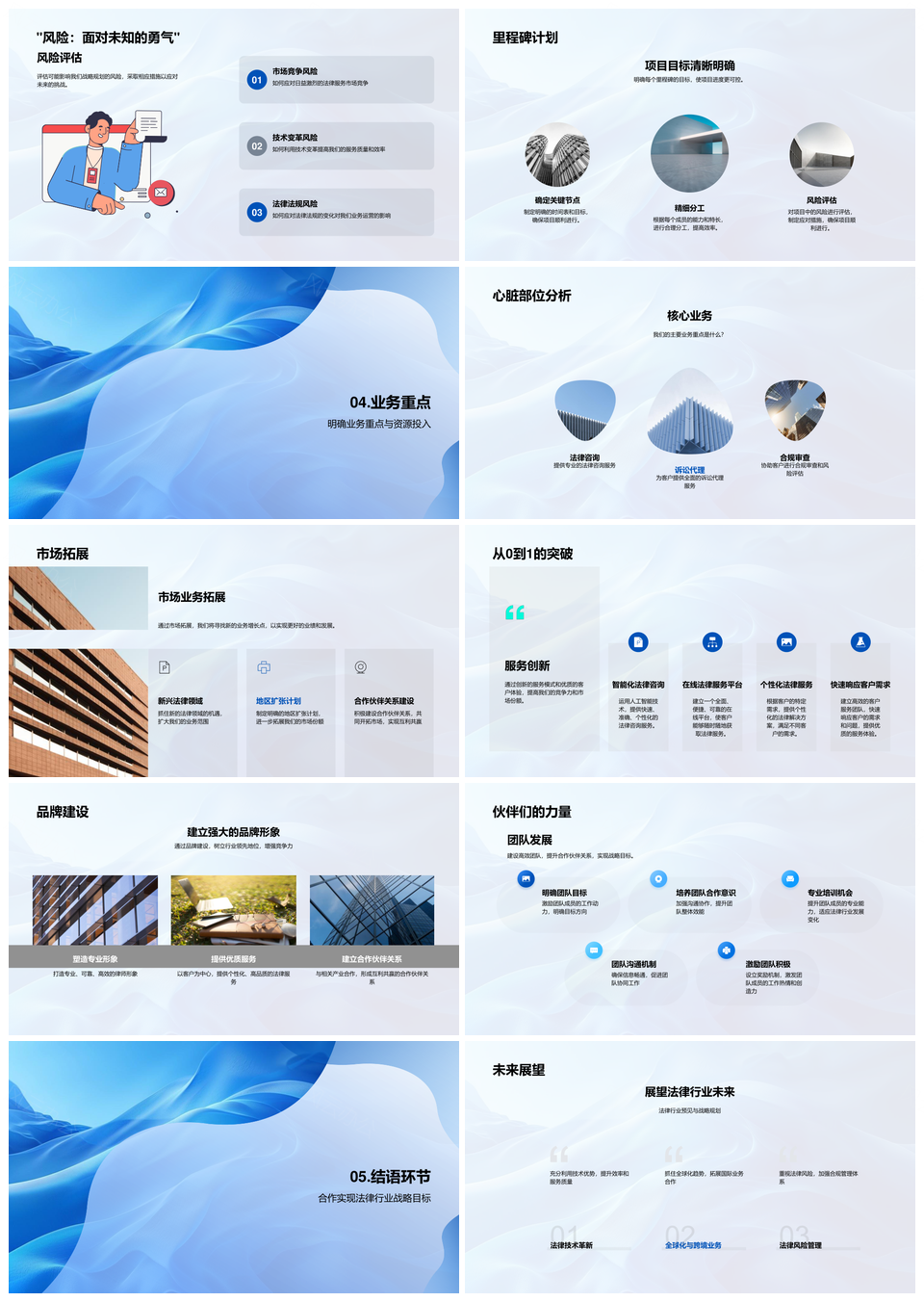 这是一张法律行业战略规划部门业务资源合作趋势PPT模板,包含法律行业、战略规划、部门、业务、资源、合作、趋势等主题内容,也可用作法律行业战略规划部门业务资源、战略规划部门业务资源合作趋势、法律行业战略规划部门、战略规划部门业务资源、部门业务资源合作趋势、法律行业战略规划业务资源、法律行业战略规划合作趋势、战略规划部门合作趋势、战略规划业务资源合作趋势、法律行业战略规划、战略规划部门、部门业务资源、业务资源合作趋势、法律行业业务资源、战略规划业务资源等PPT场景使用。 风云办公提供的法律行业战略规划部门业务资源合作趋势PPT模板,下载格式为pptx,一共31页,作品中文字及图均可以修改和编辑,图片更改请在作品中右键图片并更换,文字修改请直接点击文字进行修改。