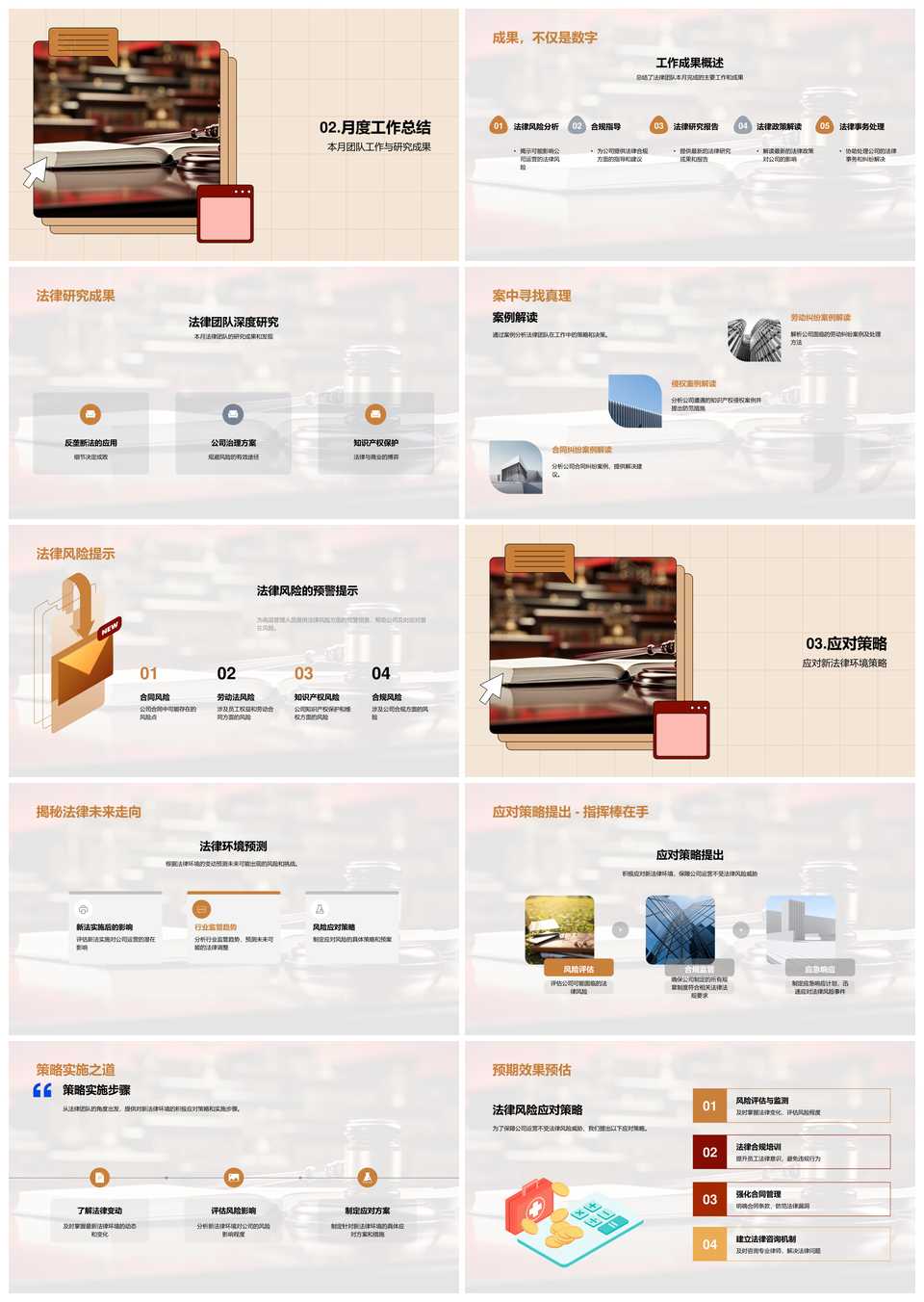 风云办公提供的法律团队风险预警应对策略月报PPT模板,下载格式为pptx,一共28页,作品中文字及图均可以修改和编辑,图片更改请在作品中右键图片并更换,文字修改请直接点击文字进行修改。