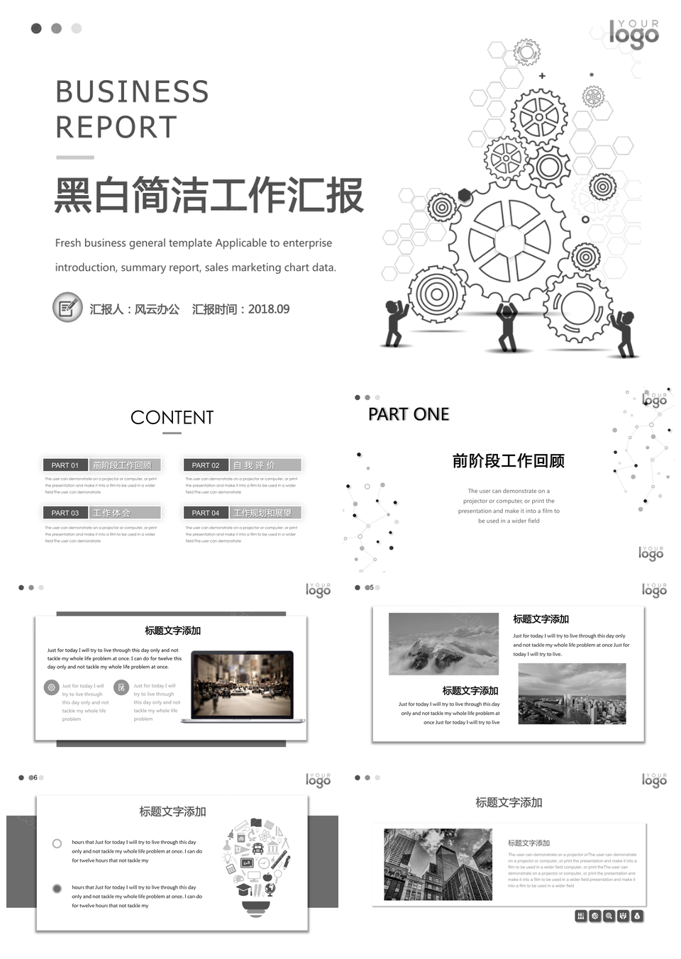 黑白简洁工作汇报PPT模板推荐