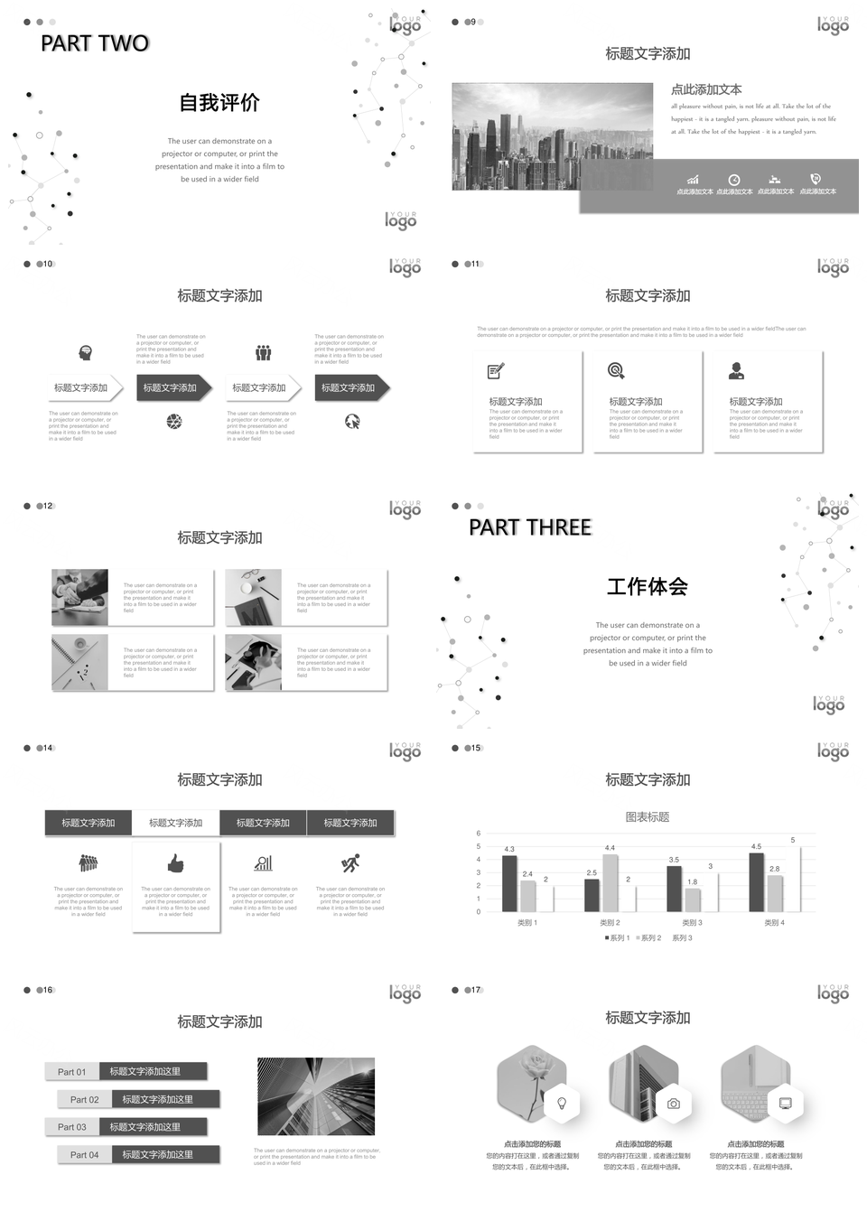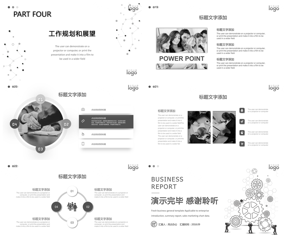 这是一张黑白简洁工作汇报PPT模板,包含黑白、简洁、工作汇报等主题内容,也可用作黑白、简洁、工作、汇报 黑白简洁工作汇报、简洁工作汇报、工作汇报等PPT场景使用。 风云办公提供的黑白简洁工作汇报PPT模板,下载格式为pptx,一共23页,作品中文字及图均可以修改和编辑,图片更改请在作品中右键图片并更换,文字修改请直接点击文字进行修改。