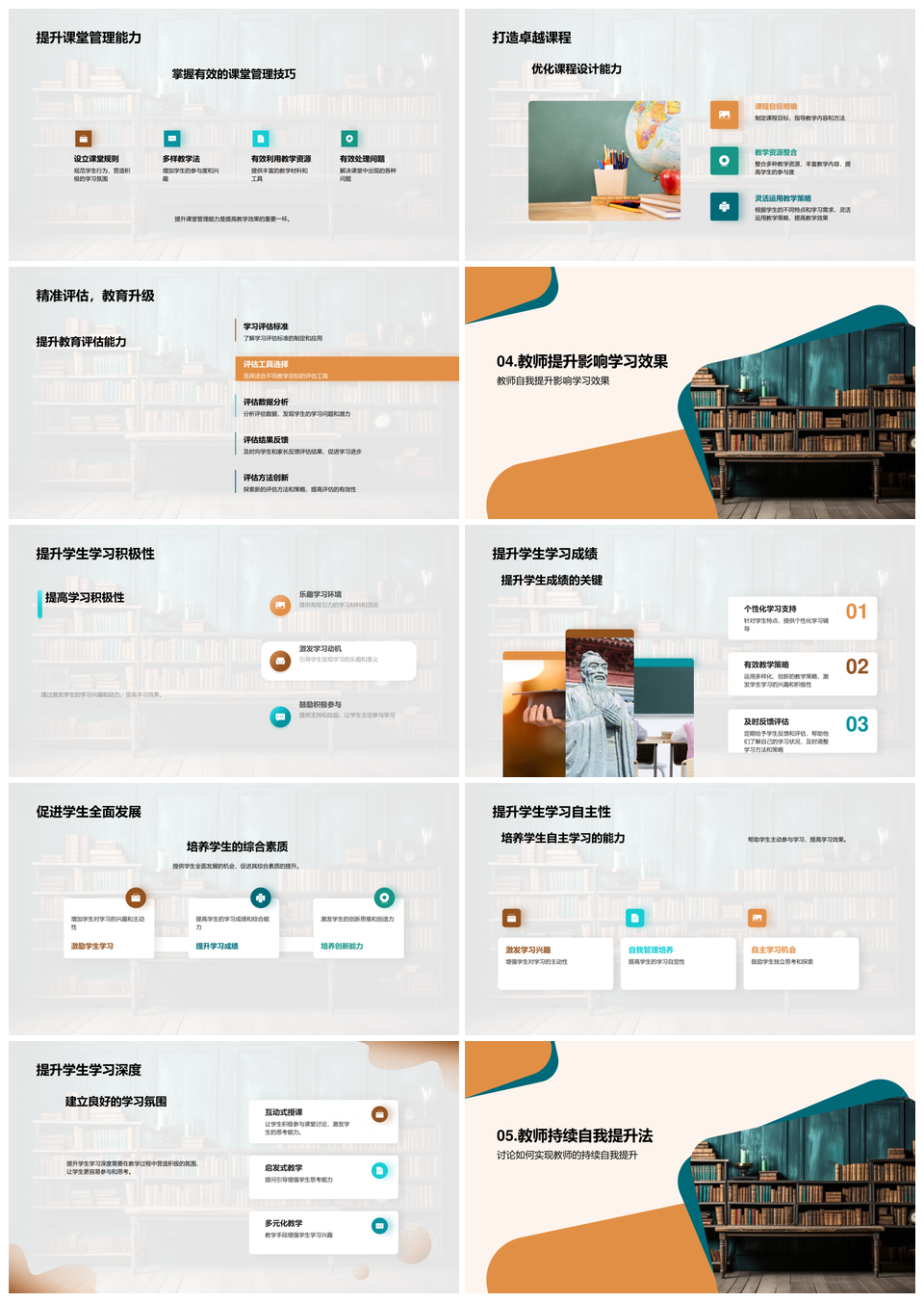 这是一张教师自我提升策略培训研讨提升课堂管理PPT模板,包含教师、自我提升、策略、培训、研讨、课堂管理等主题内容,也可用作教师自我提升策略、自我提升策略培训、提升策略培训研讨、策略培训研讨提升、培训研讨提升课堂、研讨提升课堂管理、教师自我提升策略培训、自我提升策略培训研讨、提升策略培训研讨提升、策略培训研讨提升课堂、培训研讨提升课堂管理、教师自我提升、自我提升策略、提升策略培训、策略培训研讨等PPT场景使用。 风云办公提供的教师自我提升策略培训研讨提升课堂管理PPT模板,下载格式为pptx,一共33页,作品中文字及图均可以修改和编辑,图片更改请在作品中右键图片并更换,文字修改请直接点击文字进行修改。