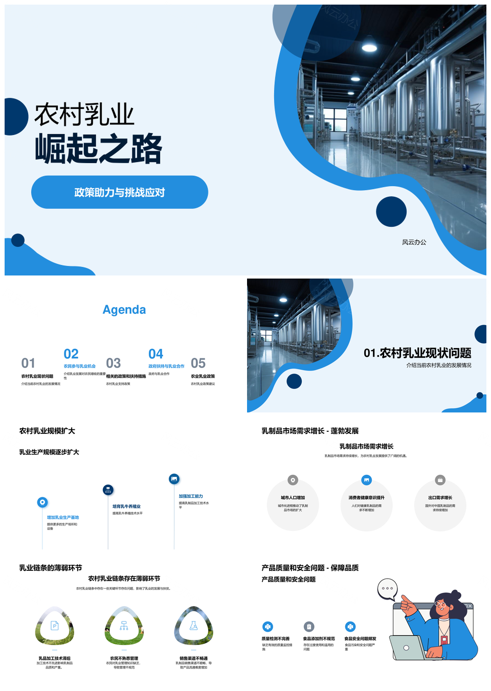 风云办公提供的农村乳业扶贫发展现状问题探讨PPT模板,下载格式为pptx,一共28页,作品中文字及图均可以修改和编辑,图片更改请在作品中右键图片并更换,文字修改请直接点击文字进行修改。