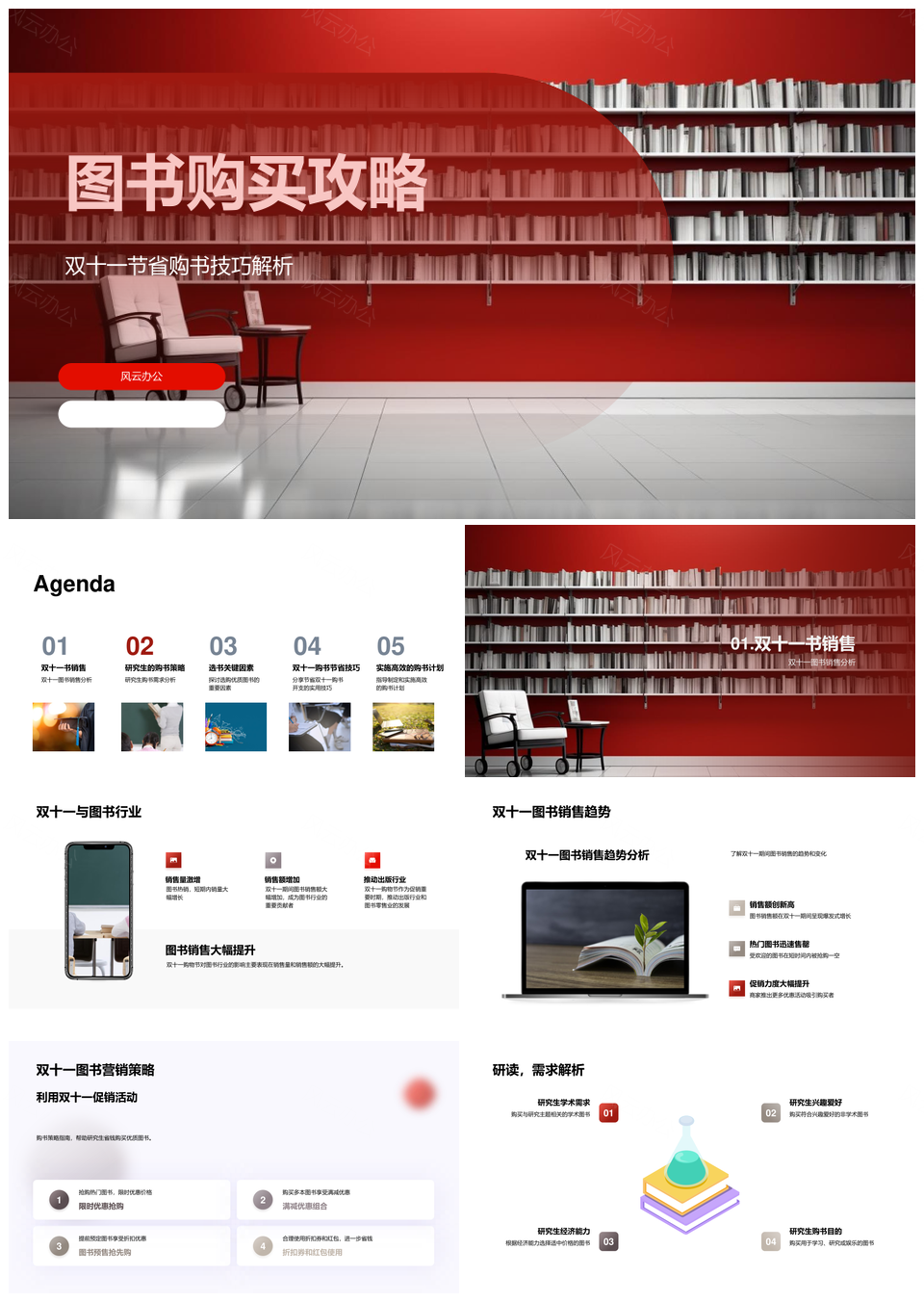 风云办公提供的双十一研究生购书攻略趋势推荐清单PPT模板,下载格式为pptx,一共33页,作品中文字及图均可以修改和编辑,图片更改请在作品中右键图片并更换,文字修改请直接点击文字进行修改。