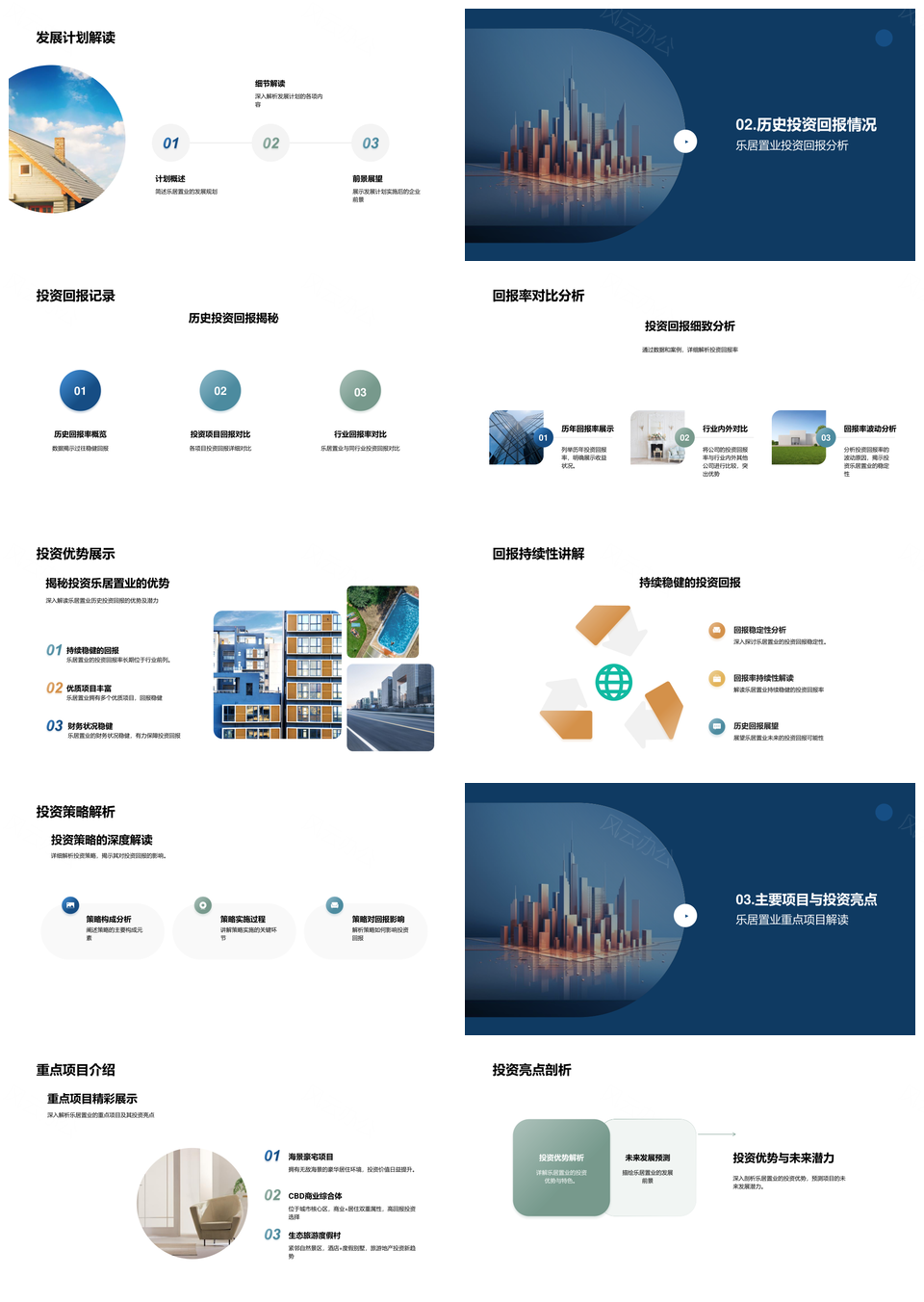这是一张乐居置业投资策略财务重点摩天项目回报优势PPT模板,包含乐居置业、投资策略、财务重点、摩天项目、回报优势等主题内容,也可用作乐居置业投资策略、摩天项目回报优势、财务重点摩天项目、投资策略财务重点、乐居置业财务重点、摩天项目投资策略、置业投资策略财务、策略财务重点回报、投资策略回报优势、摩天项目投资回报、置业投资财务重点、乐居置业摩天项目、置业投资策略回报、项目回报优势投资、策略财务项目回报等PPT场景使用。 风云办公提供的乐居置业投资策略财务重点摩天项目回报优势PPT模板,下载格式为pptx,一共33页,作品中文字及图均可以修改和编辑,图片更改请在作品中右键图片并更换,文字修改请直接点击文字进行修改。