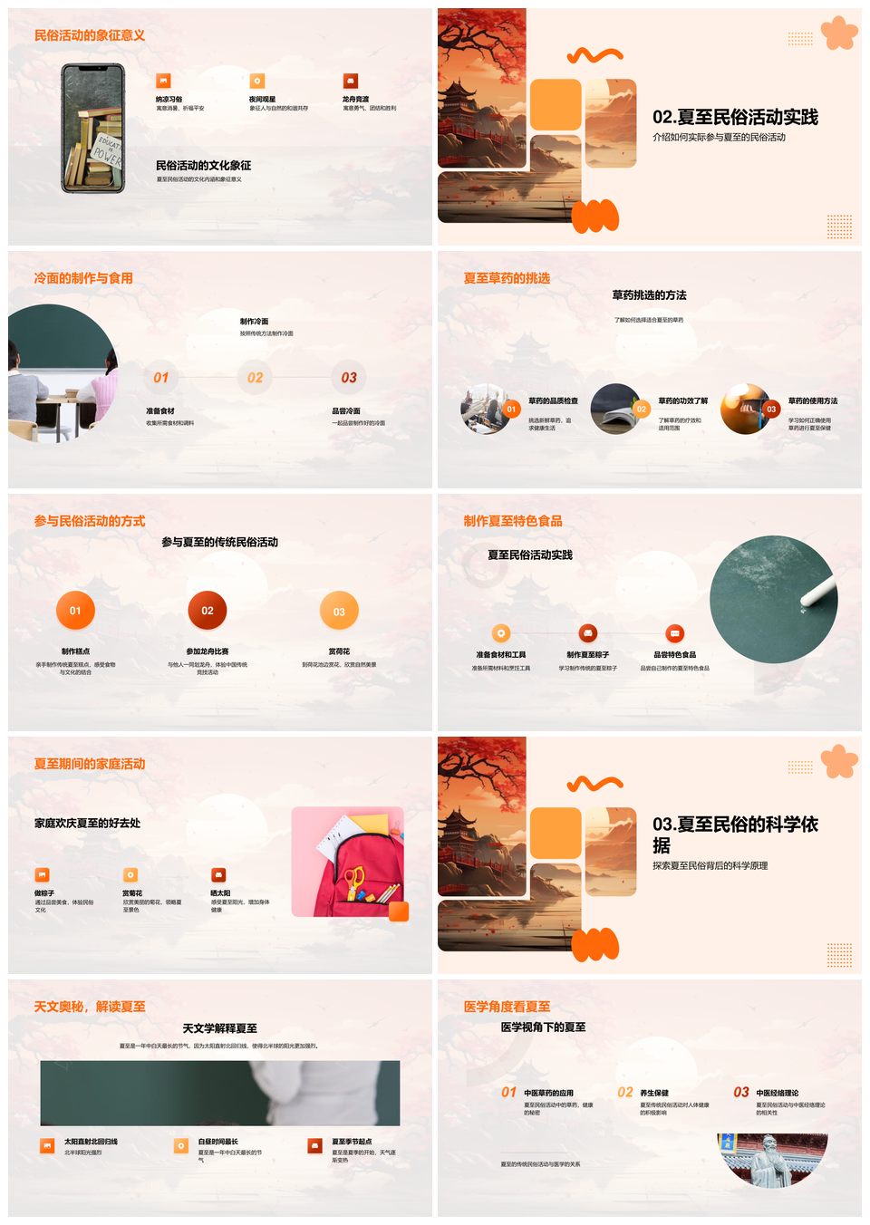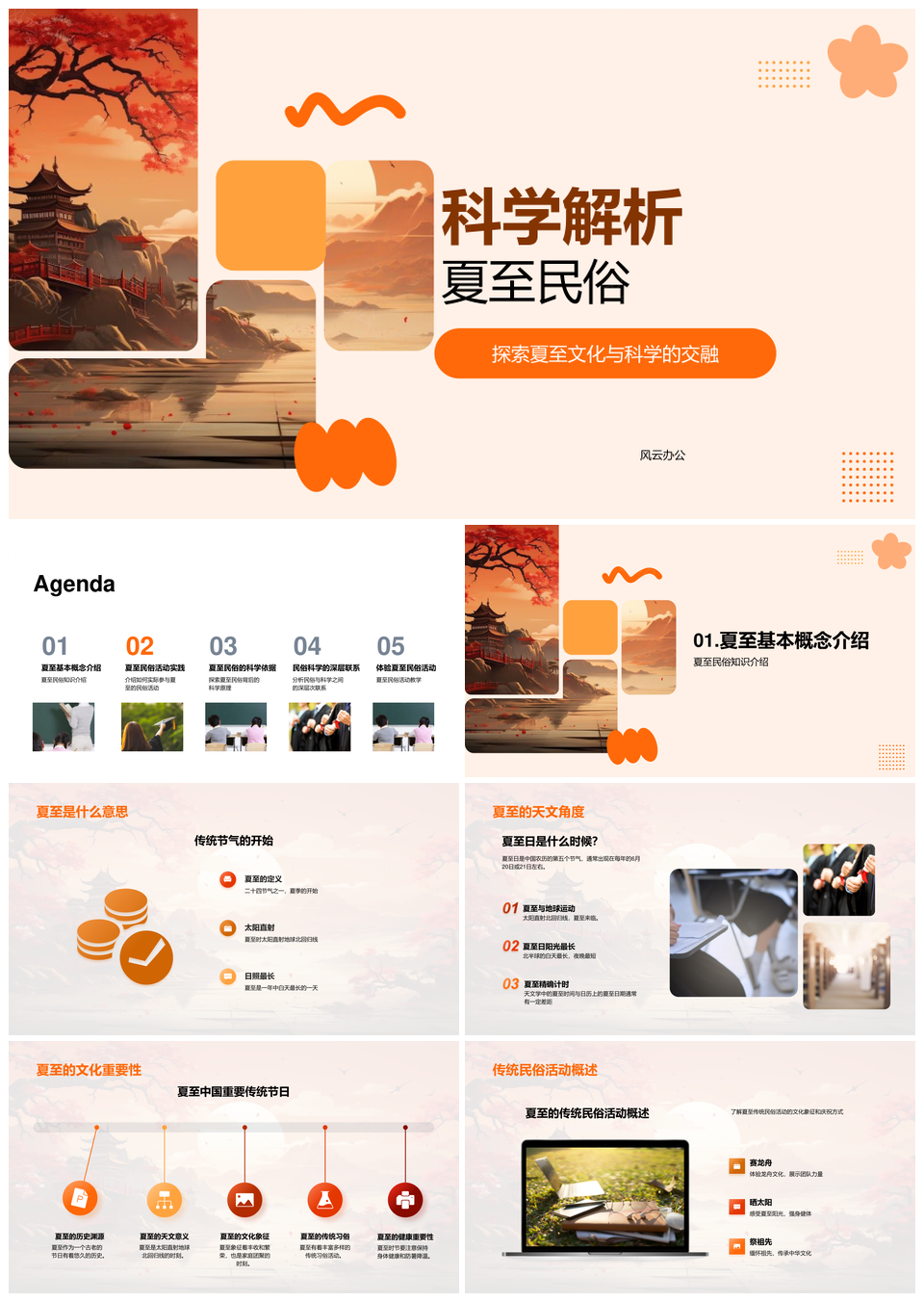 风云办公提供的科学解析夏至民俗活动天文医学传统PPT模板,下载格式为pptx,一共33页,作品中文字及图均可以修改和编辑,图片更改请在作品中右键图片并更换,文字修改请直接点击文字进行修改。