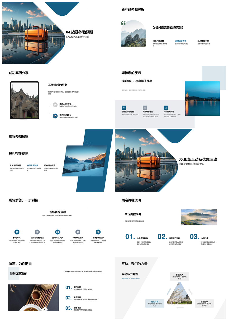这是一张未来城市畅游XXX新旅程个性服务优惠PPT模板,包含未来城市、畅游、XXX、新旅程、个性服务、优惠等主题内容,也可用作未来城市畅游XXX、未来城市畅游新旅程、未来城市新旅程个性服务、畅游XXX新旅程个性服务、畅游新旅程个性服务优惠、未来城市畅游、城市畅游XXX、畅游XXX新旅程、XXX新旅程个性服务、新旅程个性服务优惠、未来城市新旅程、未来城市个性服务、畅游新旅程优惠、未来城市、个性服务优惠等PPT场景使用。 风云办公提供的未来城市畅游XXX新旅程个性服务优惠PPT模板,下载格式为pptx,一共28页,作品中文字及图均可以修改和编辑,图片更改请在作品中右键图片并更换,文字修改请直接点击文字进行修改。