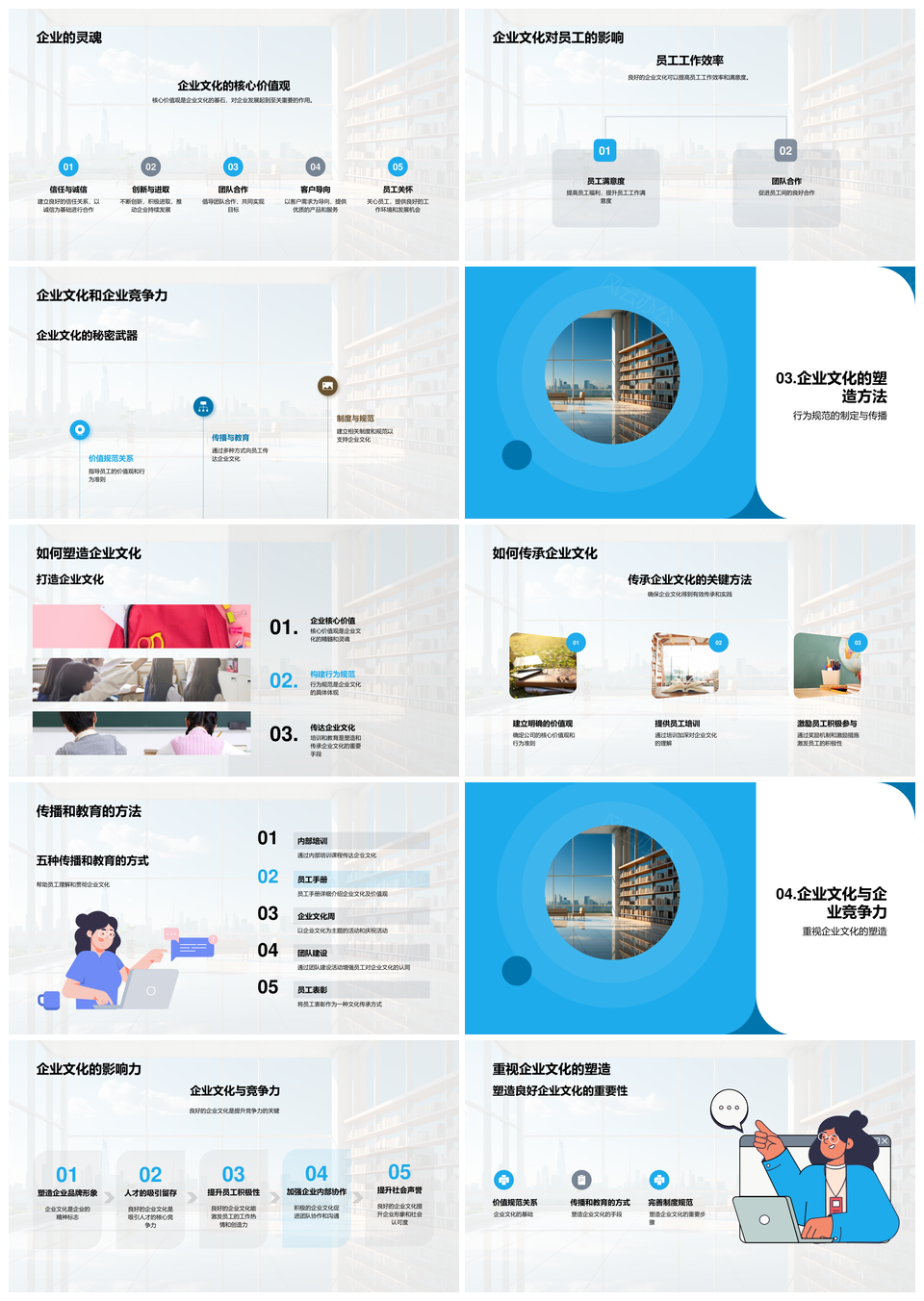 这是一张企业文化传承核心价值观塑造核心竞争力PPT模板,包含企业文化、传承、核心价值观、塑造、核心竞争力等主题内容,也可用作企业文化传承核心价值观塑造、传承核心价值观塑造核心竞争力、企业文化传承核心价值观、核心价值观塑造核心竞争力、企业文化传承塑造、传承核心价值观核心竞争力、企业文化核心价值观塑造、企业文化传承核心竞争力、传承塑造核心竞争力、企业文化核心价值观、传承核心价值观、核心价值观塑造、塑造核心竞争力、企业文化传承、核心竞争力等PPT场景使用。 风云办公提供的企业文化传承核心价值观塑造核心竞争力PPT模板,下载格式为pptx,一共23页,作品中文字及图均可以修改和编辑,图片更改请在作品中右键图片并更换,文字修改请直接点击文字进行修改。