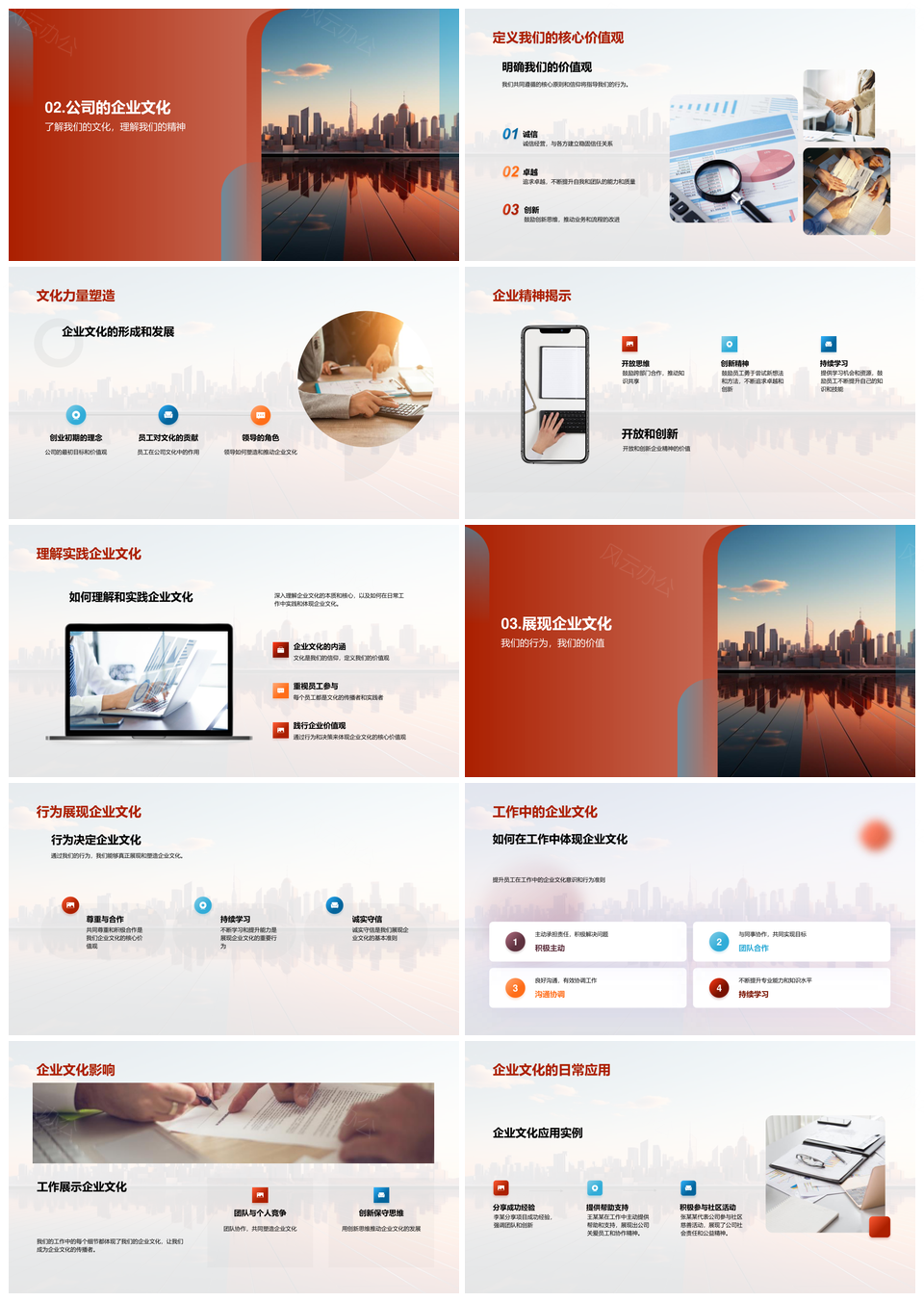 这是一张企业文化传承构建核心价值历程展望未来PPT模板,包含企业文化、传承、构建、核心价值、历程、展望、未来等主题内容,也可用作企业文化传承构建核心价值、构建核心价值历程展望未来、传承构建核心价值历程、企业文化传承历程展望未来、企业文化构建核心价值历程、传承构建核心价值、构建核心价值历程、核心价值历程展望未来、企业文化传承构建、企业文化传承历程、企业文化构建核心价值、核心价值展望未来、构建历程展望未来、企业文化传承、构建核心价值、核心价值历程、历程展望未来、企业文化构建、传承展望未来、核心价值传承等PPT场景使用。 风云办公提供的企业文化传承构建核心价值历程展望未来PPT模板,下载格式为pptx,一共28页,作品中文字及图均可以修改和编辑,图片更改请在作品中右键图片并更换,文字修改请直接点击文字进行修改。