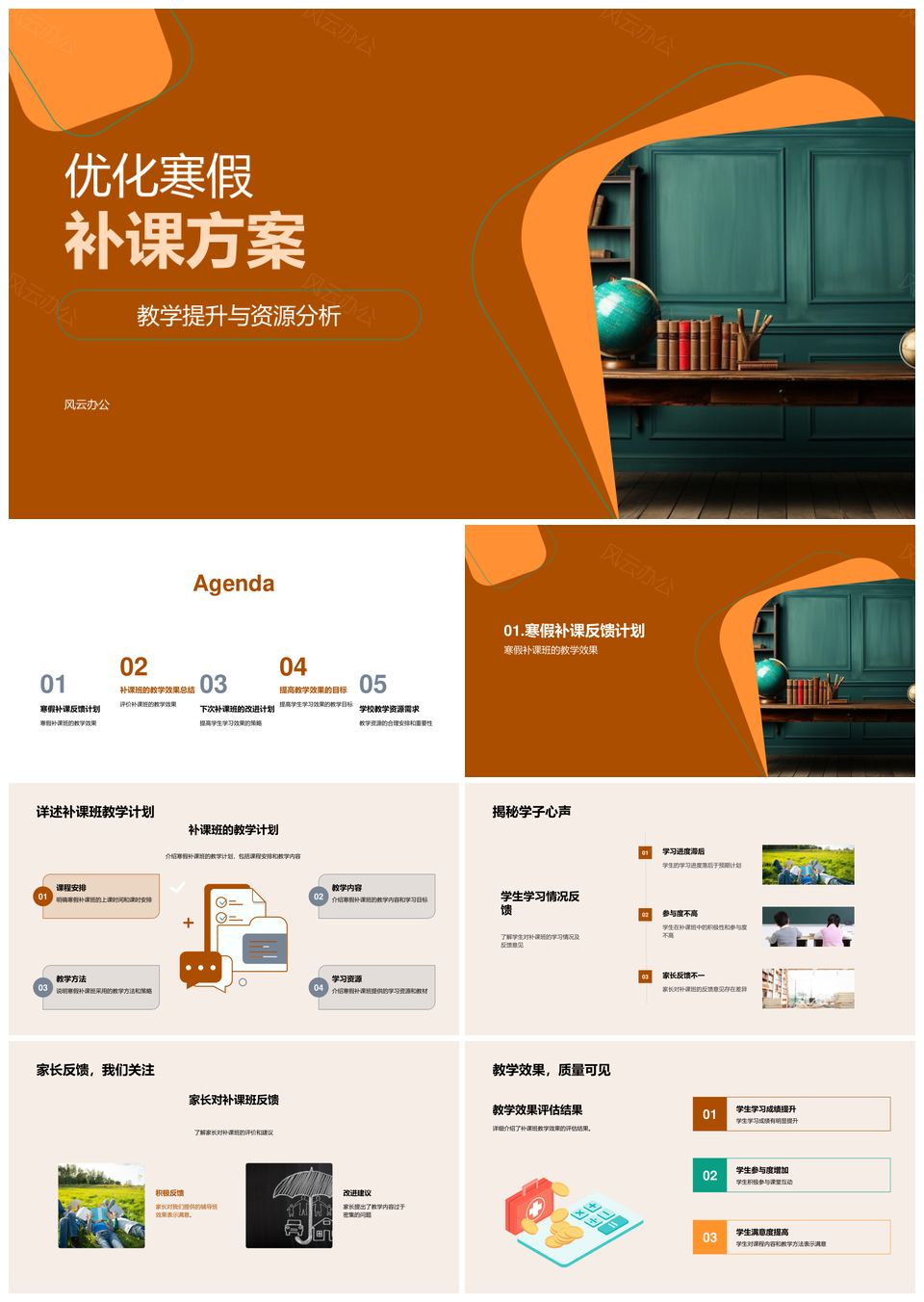 风云办公提供的寒假补课优化方案教学资源评估反馈PPT模板,下载格式为pptx,一共28页,作品中文字及图均可以修改和编辑,图片更改请在作品中右键图片并更换,文字修改请直接点击文字进行修改。