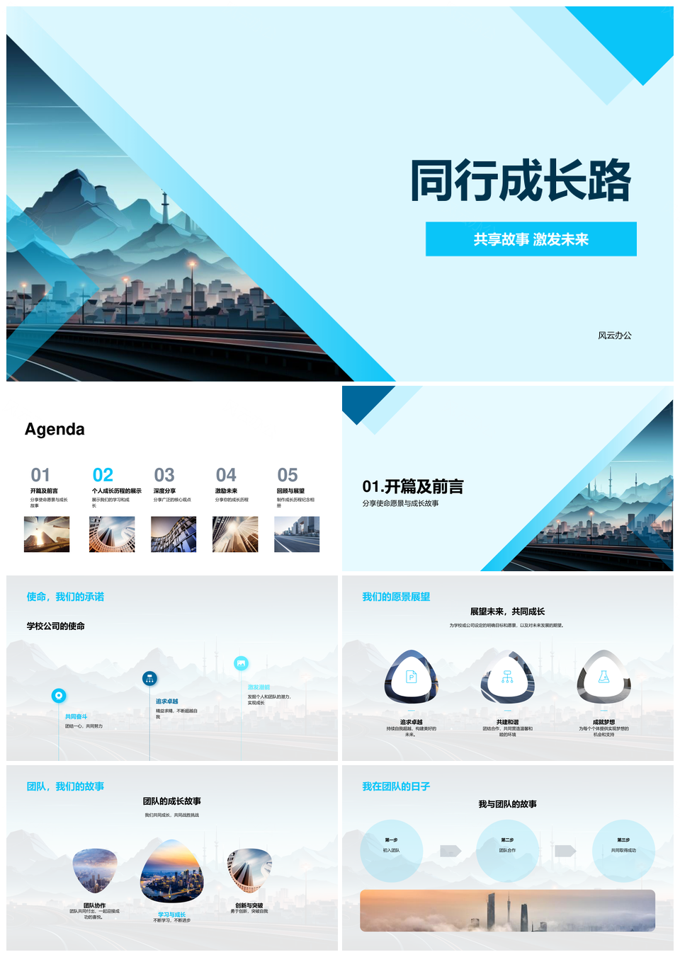 同行成长共享故事相册深享未来期待PPT模板推荐