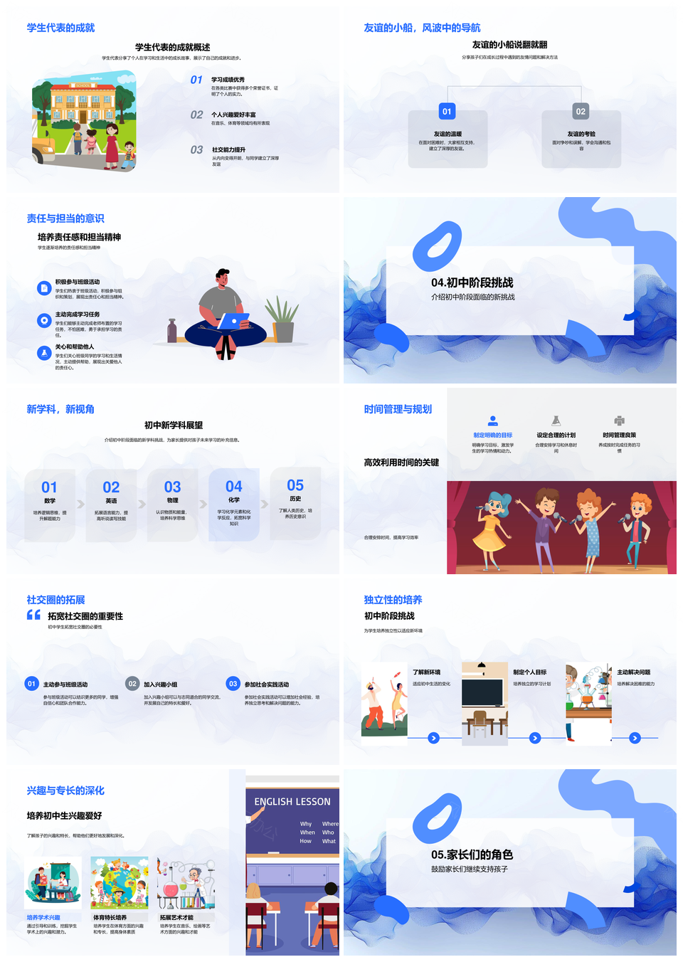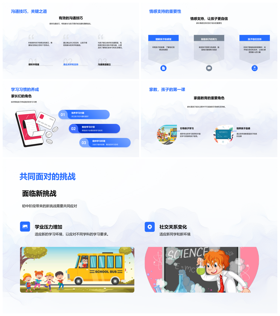 风云办公提供的六年级学业成长家校共迎初中挑战PPT模板,下载格式为pptx,一共33页,作品中文字及图均可以修改和编辑,图片更改请在作品中右键图片并更换,文字修改请直接点击文字进行修改。