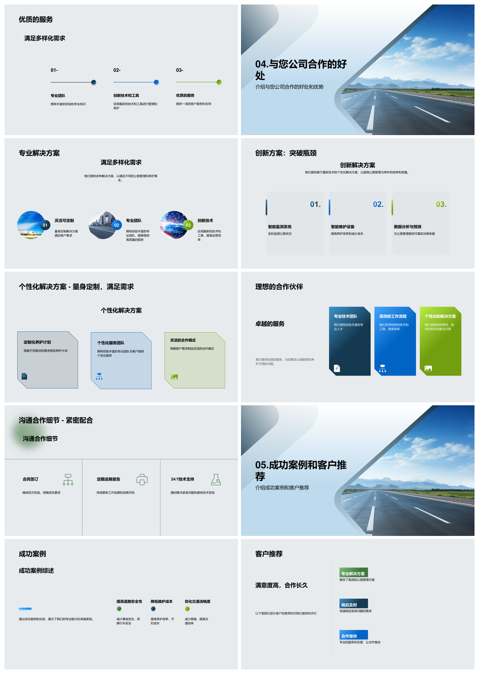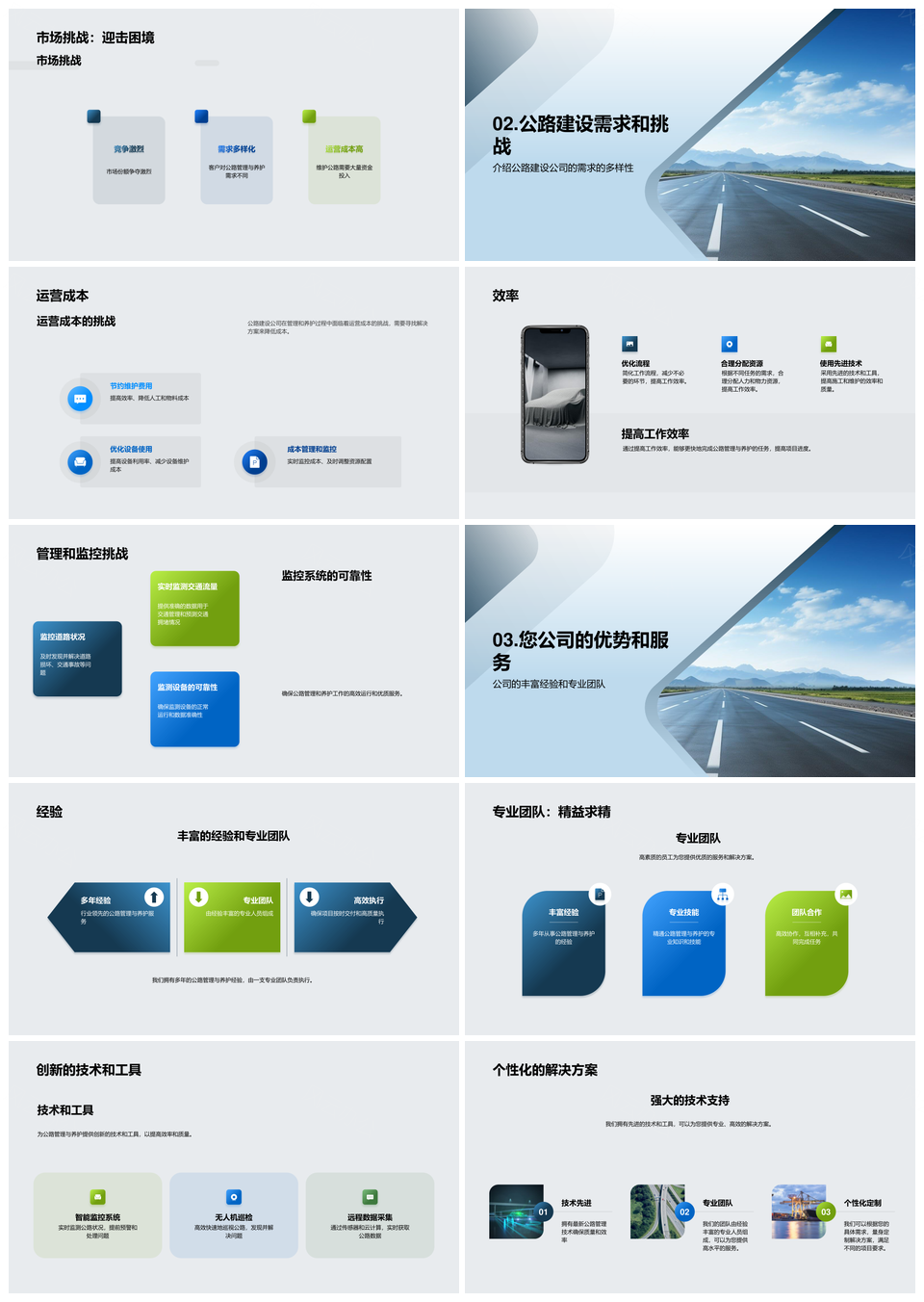 风云办公提供的公路养护市场趋势挑战与营销策略PPT模板,下载格式为pptx,一共30页,作品中文字及图均可以修改和编辑,图片更改请在作品中右键图片并更换,文字修改请直接点击文字进行修改。