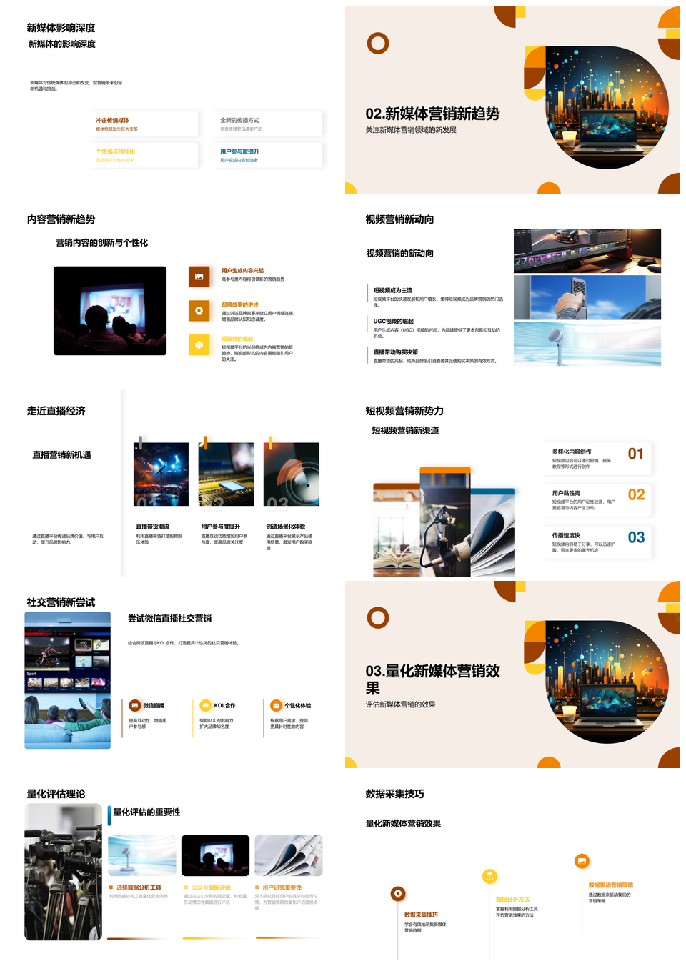 新媒体营销策略数据分析内容视频社交用户需求量化评估数字图标PPT模板