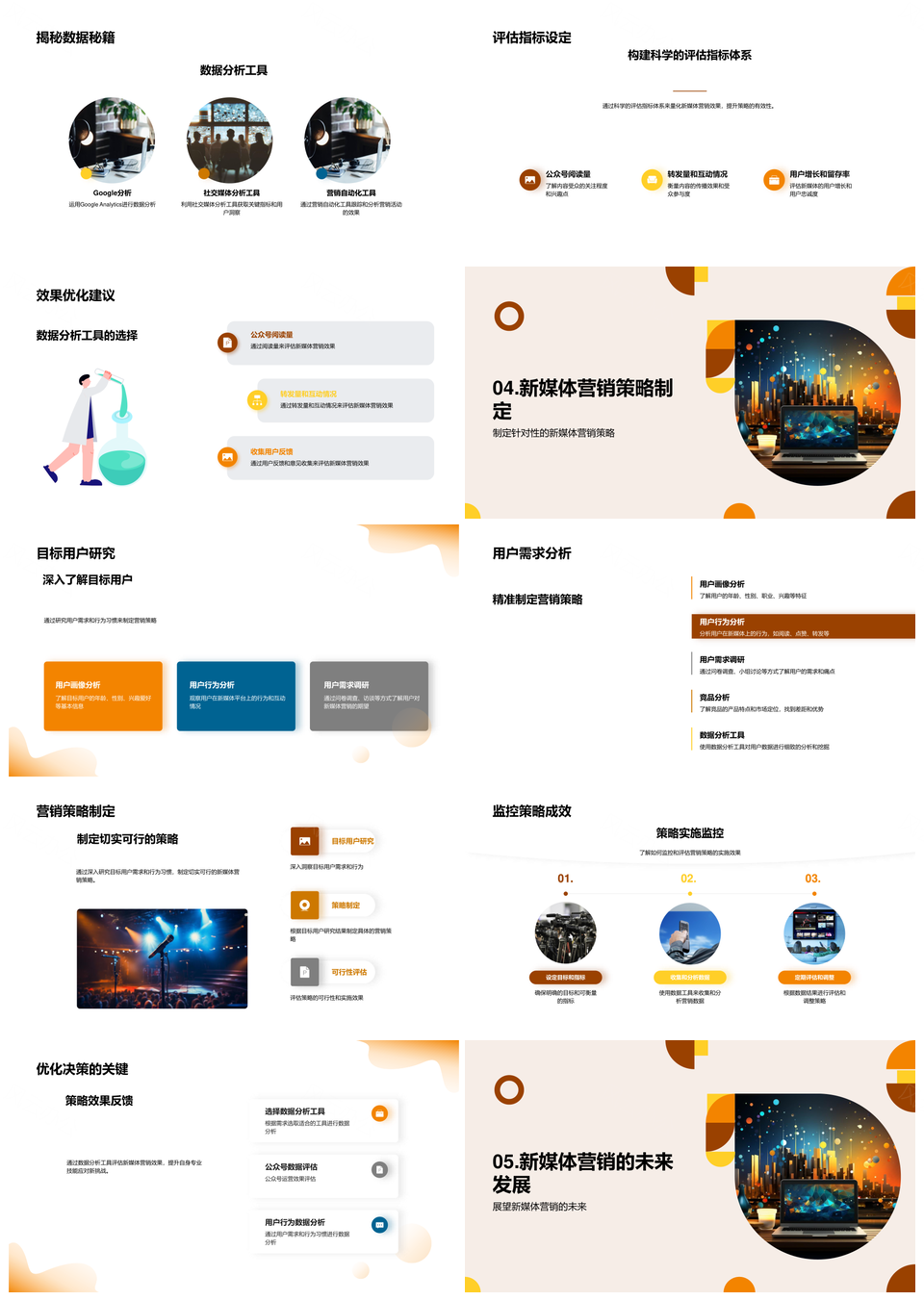 新媒体营销策略数据分析内容视频社交用户需求量化评估数字图标PPT模板推荐