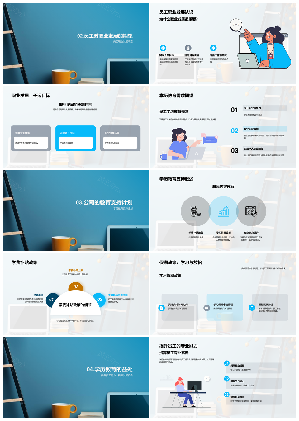风云办公提供的员工职业阶梯与学历教育支持计划PPT模板,下载格式为pptx,一共24页,作品中文字及图均可以修改和编辑,图片更改请在作品中右键图片并更换,文字修改请直接点击文字进行修改。